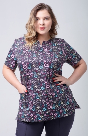 Блуза женская, полуприлегающего силуэта, без застежки, с фигурной горловиной, разрезами в боковых швах