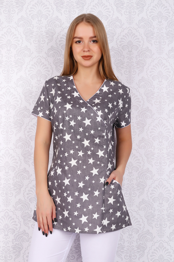 Блуза женская М-285 (принт звезды/серый)