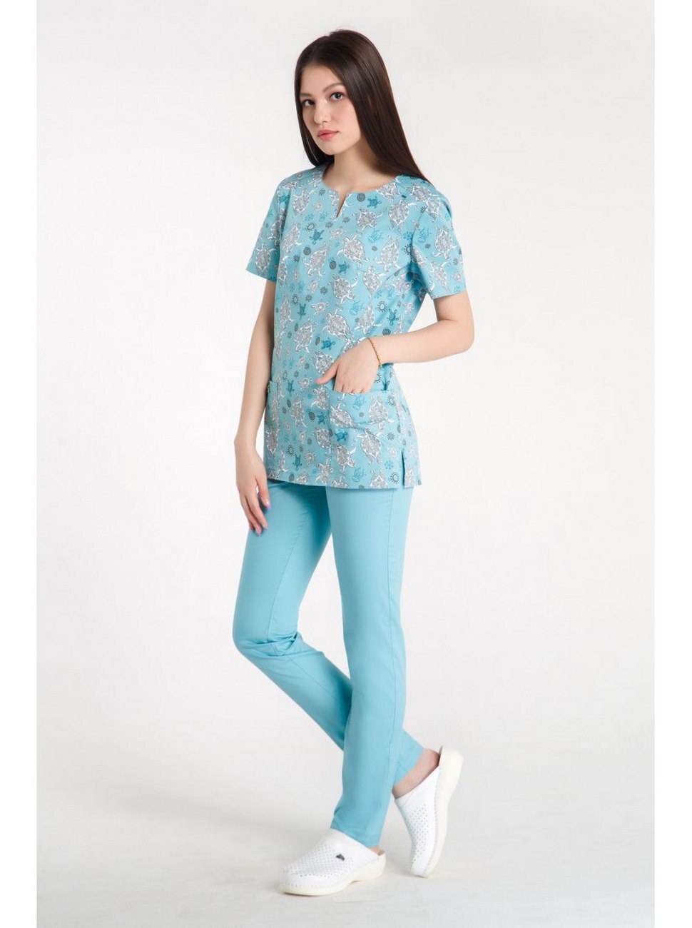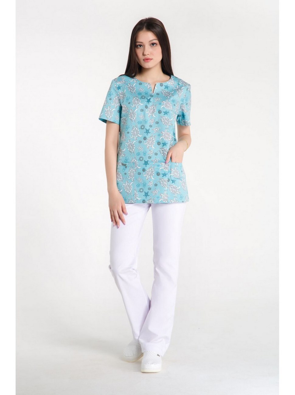 Блуза женская Z14-1424 (принт черепахи/ментол)