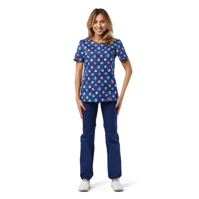Блуза женская Z14-1424 (принт совята/голубой 720)