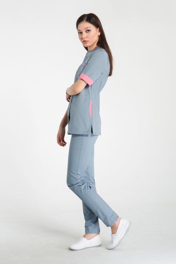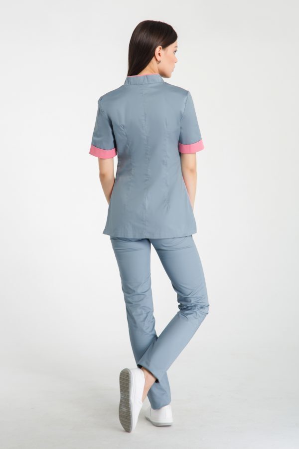 Канты нагрудных карманов, бочек нижних карманов, внутренняя деталь стойки, внутренняя обтачка низа рукавов выполнены из отделочной ткани.