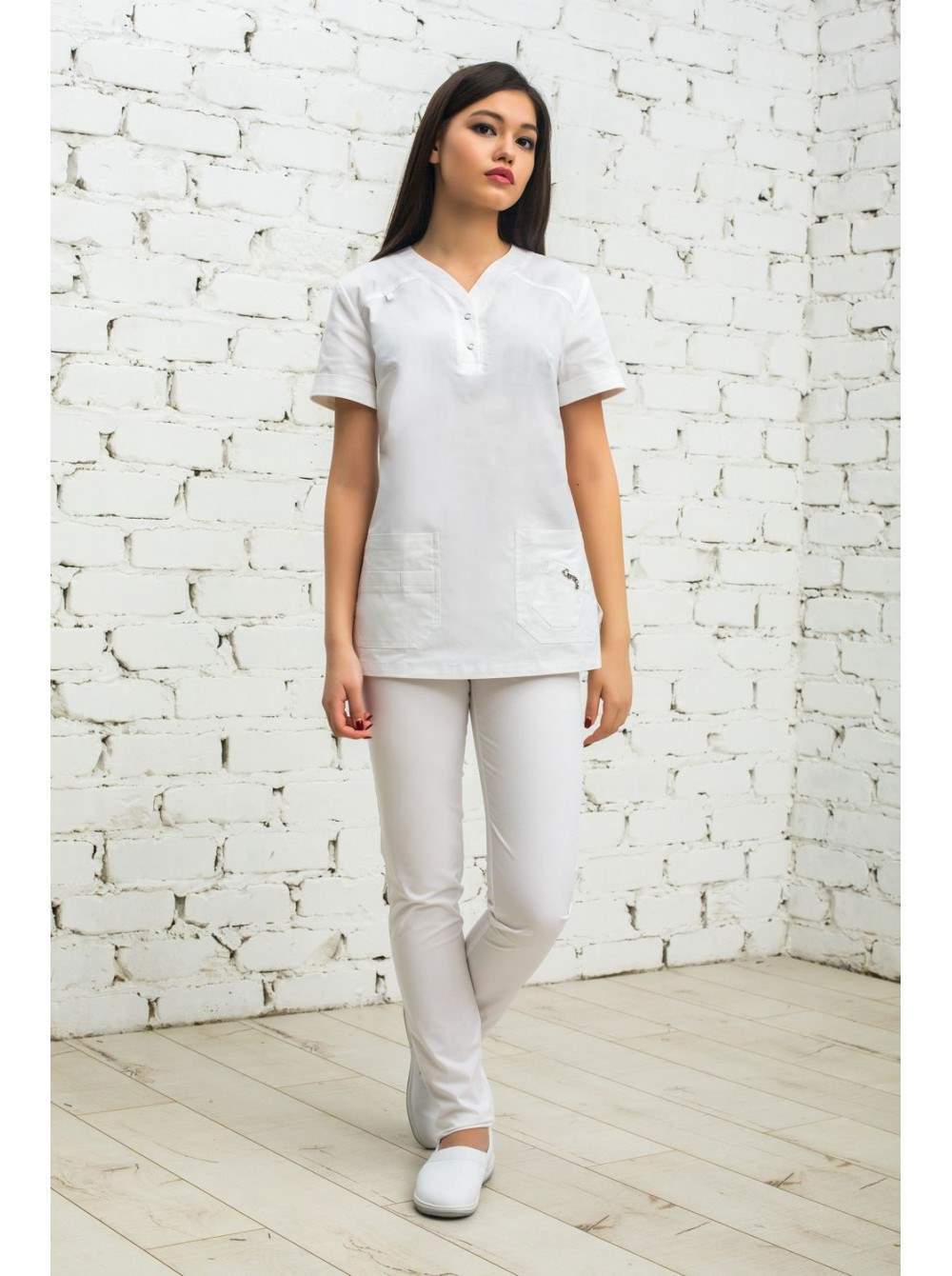 Блуза женская, полуприлегающего силуэта, с разрезами в боковых швах.