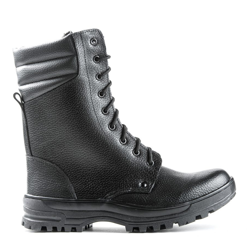 Универсальные кожаные ботинки-берцы клеевого метода крепления, подходят для силовых структур, активного отдыха, охоты, повседневной носки. Подкладка и вкладная стелька выполнены из искусственного меха. В верхней части ботинок выполнен мягкий кант. Ботинки фиксируются на ноге с помощью шнуровки и имеют полуглухой клапан. Подошва из однослойного ПУ. Литьевой метод крепления верха к подошве гарантирует водонепроницаемое соединение. Высота без учета толщины низа обуви 23 см. Армейская обувь/военная обувь/кожаные берцы/кожаные ботинки/высокие берцы/зимние ботинки/Берцы