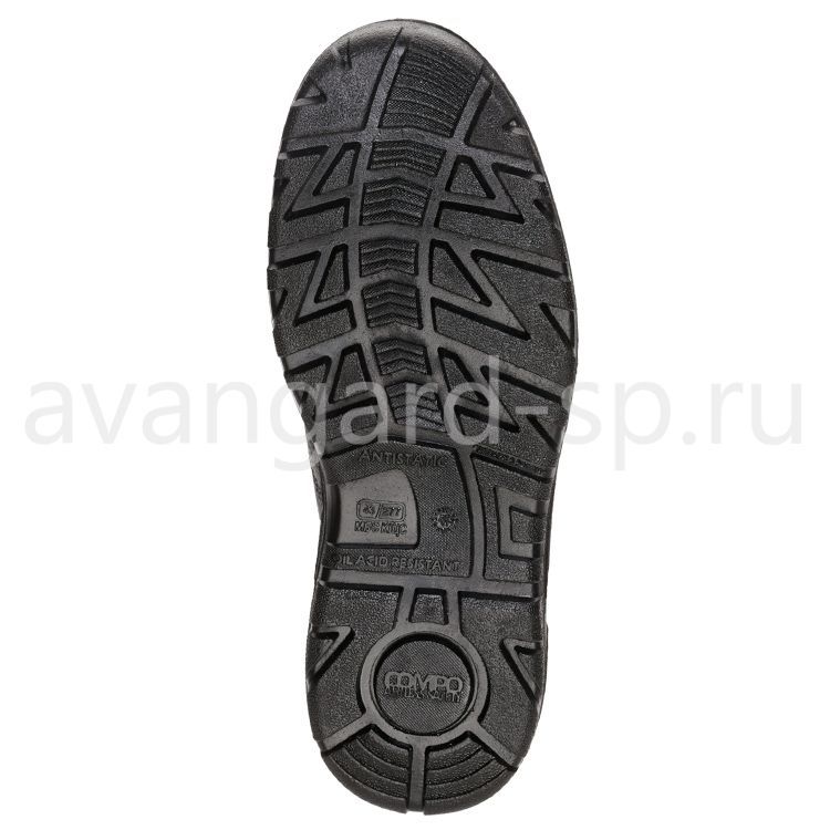 - однослойная подошва выполнена из ПУ, обладает стойкостью к воздействию масел, а также сырой нефти, иных нефтепродуктов, растворов кислот и щелочей, нетоксичной и взрывоопасной пыли;