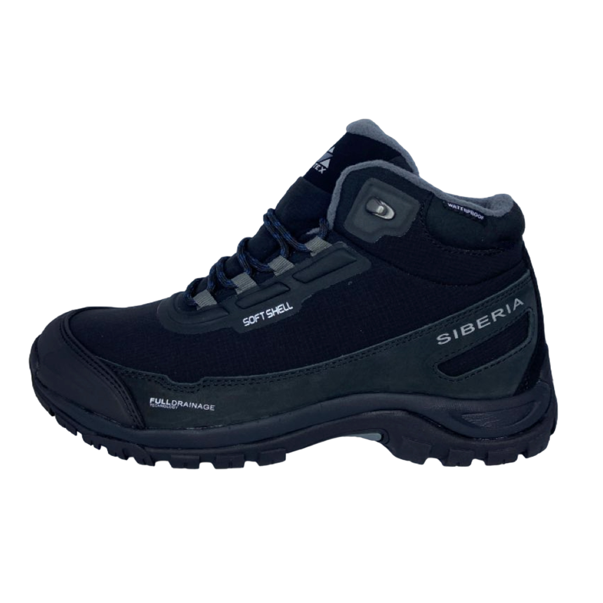 Современные ботинки Editex Siberia по достоинству оценят любители активного отдыха, которые ценят сочетание качественных материалов с универсальным дизайном, позволяющий носить ботинки не только в условиях отсутствия дорог, но и на городских улицах. Верхний слой ботинок выполнен на основе SoftShell материала, обладающий высокими износостойкими характеристиками, позволяющий выдерживать длительное ношение и достаточной эластичностью для удобства ношения. Дополнительную прочность обуви придают усилители носка и пятки, что в сочетании с прошивкой из двойной строчки обеспечивает высокую надёжность ботинок в экстремальных ситуациях. Специальный мембранный материал выполнен по технологии Waterproof Windproof Breathable (WWB), создавая защиту от ветра и влаги, поддерживая комфортный микроклимат внутри. Высокотехнологичный утеплитель Thinsulate благодаря скрученным по спирали ультратонким полиэфирным волокнам создаёт эффективный тепловой барьер, теплоизолируя ноги и защищая их от сильных морозов. Для предотвращения образования неприятного запаха ботинки оборудованы съёмными стельками Ortholite, обладающие антимикробной обработкой и обеспечивают вентиляцию стопы для комфорта. Промежуточная подошва EVA благодаря материалу на основе этиленвинилацетата создаёт эффективную амортизацию при ходьбе и позволяет в полной мере наслаждаться пешей прогулкой. Подошва ботинок выполнена из износостойкой и крепкой резины, выдерживающая перепады температур, а развитый рисунок протектора обеспечивает качественное сцепление с поверхностью. Шнуровка на крепких петлях позволяет создать надёжную посадку на ноге. Качественная сборка и технологичные материалы обеспечивают длительное ношение изделия в суровых погодных условиях, а также частую стирку без потери функциональных свойств, формы и цвета. Стильный тёмный дизайн чёрного цвета будет отлично смотреться как в походе, так и в городе сочетаясь с элементами одежды тёмных тонов.