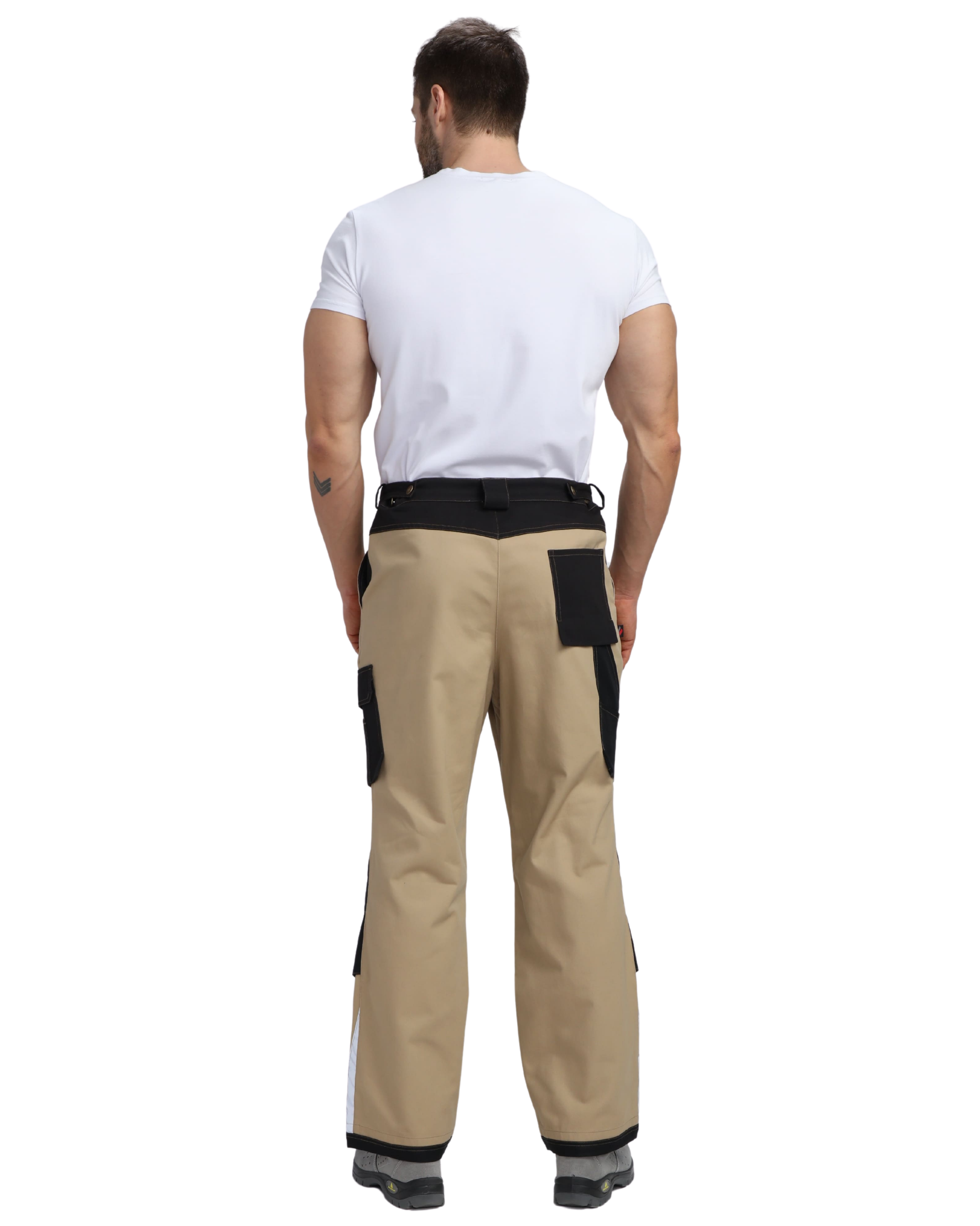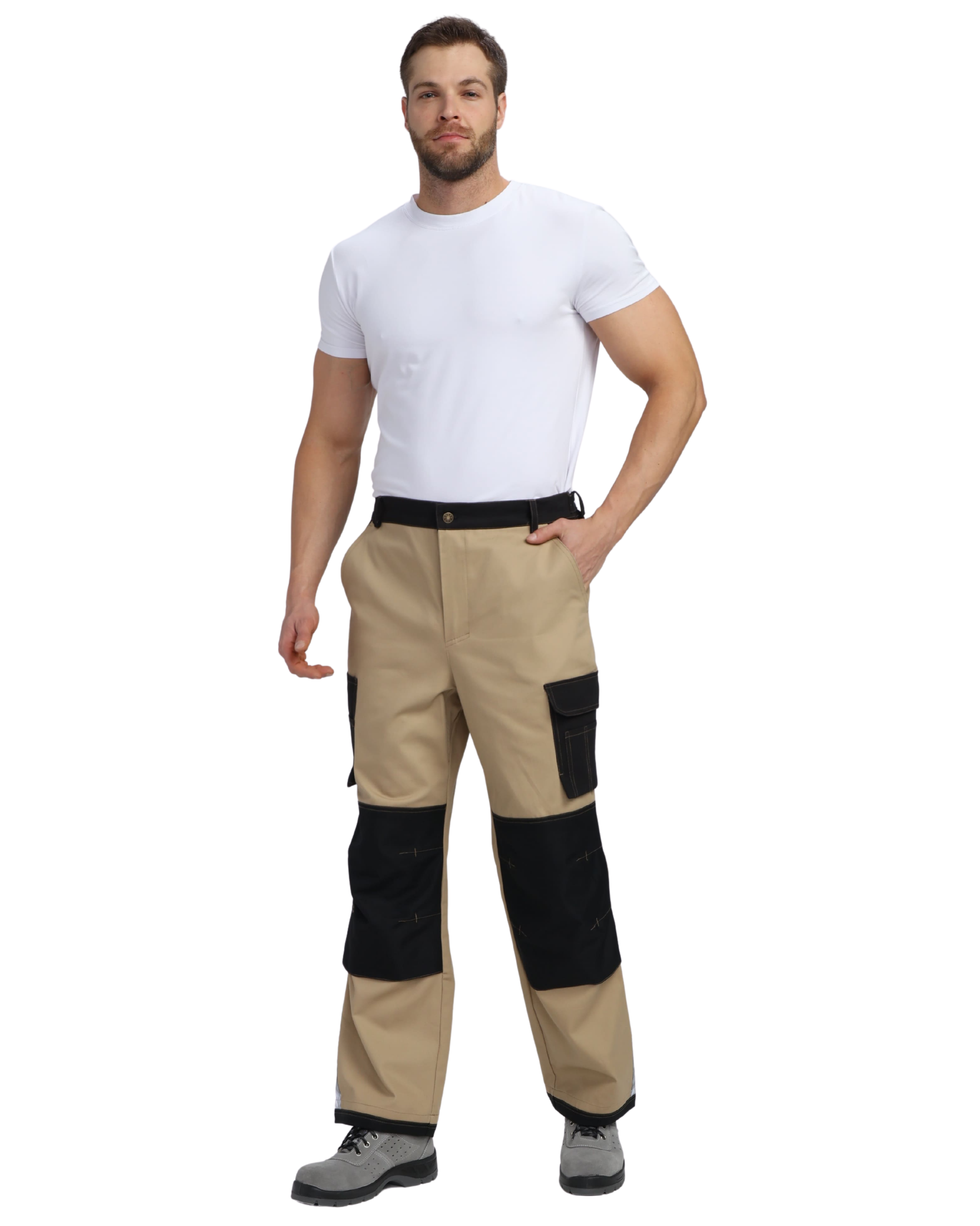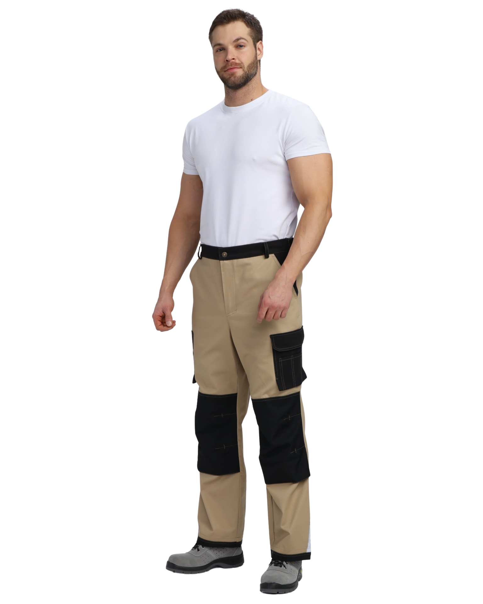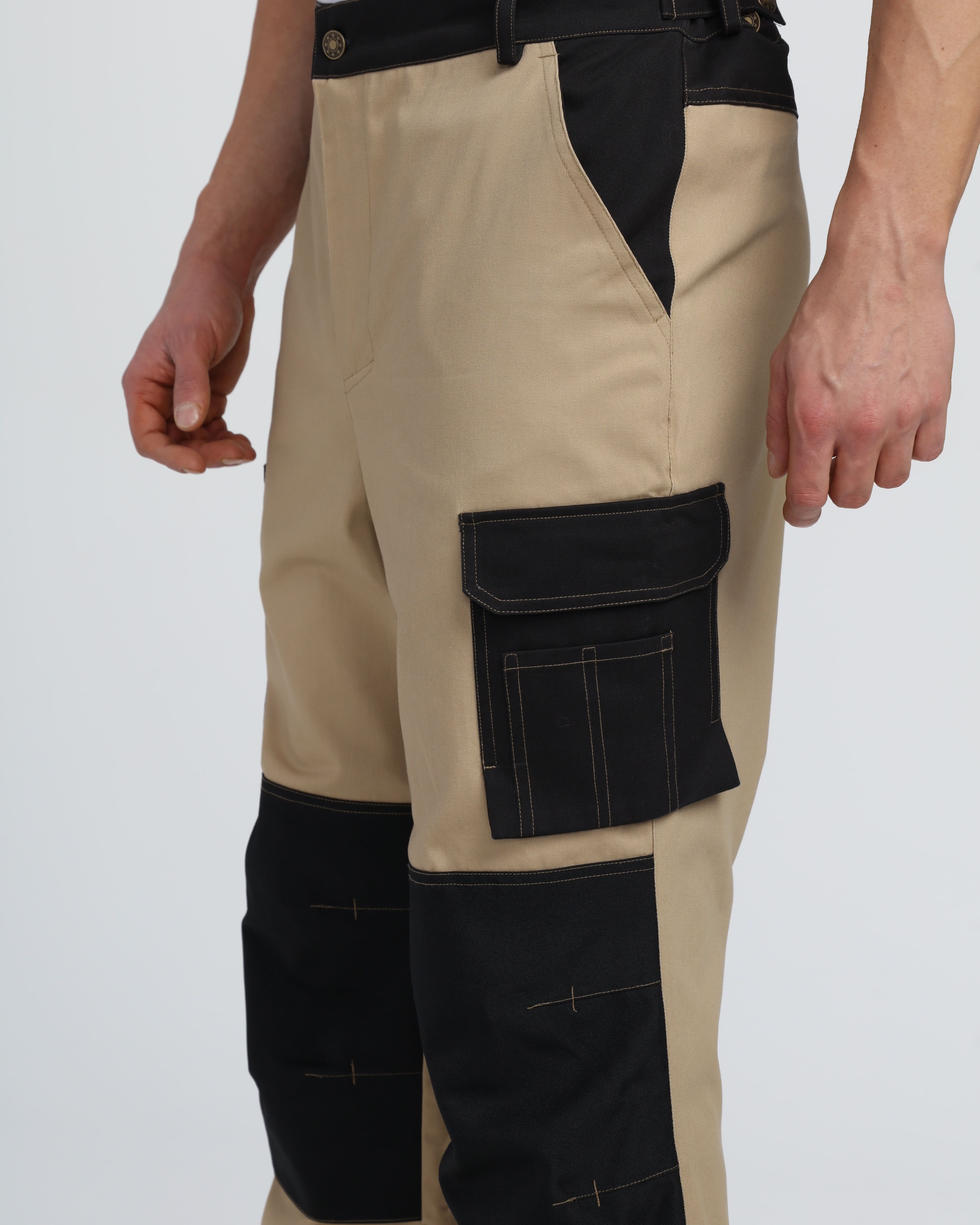 на уровне колена настрочены усиливающие накладки