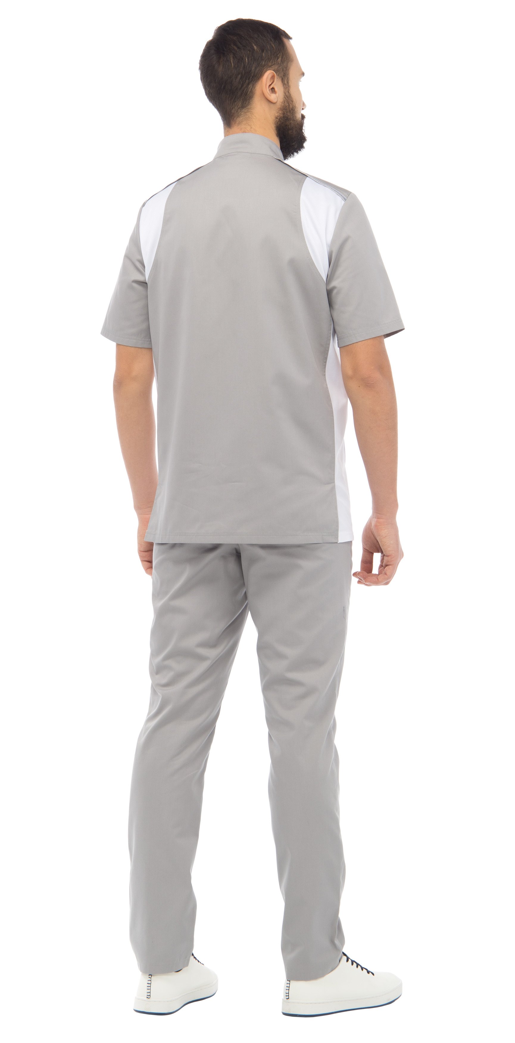 Брюки прямого современного кроя с поясом с 5 шлевками. Застежка на гульфик с молнией, на поясе - на пуговицу. На передних половинках верхние боковые карманы. На задних половинках накладные карманы.