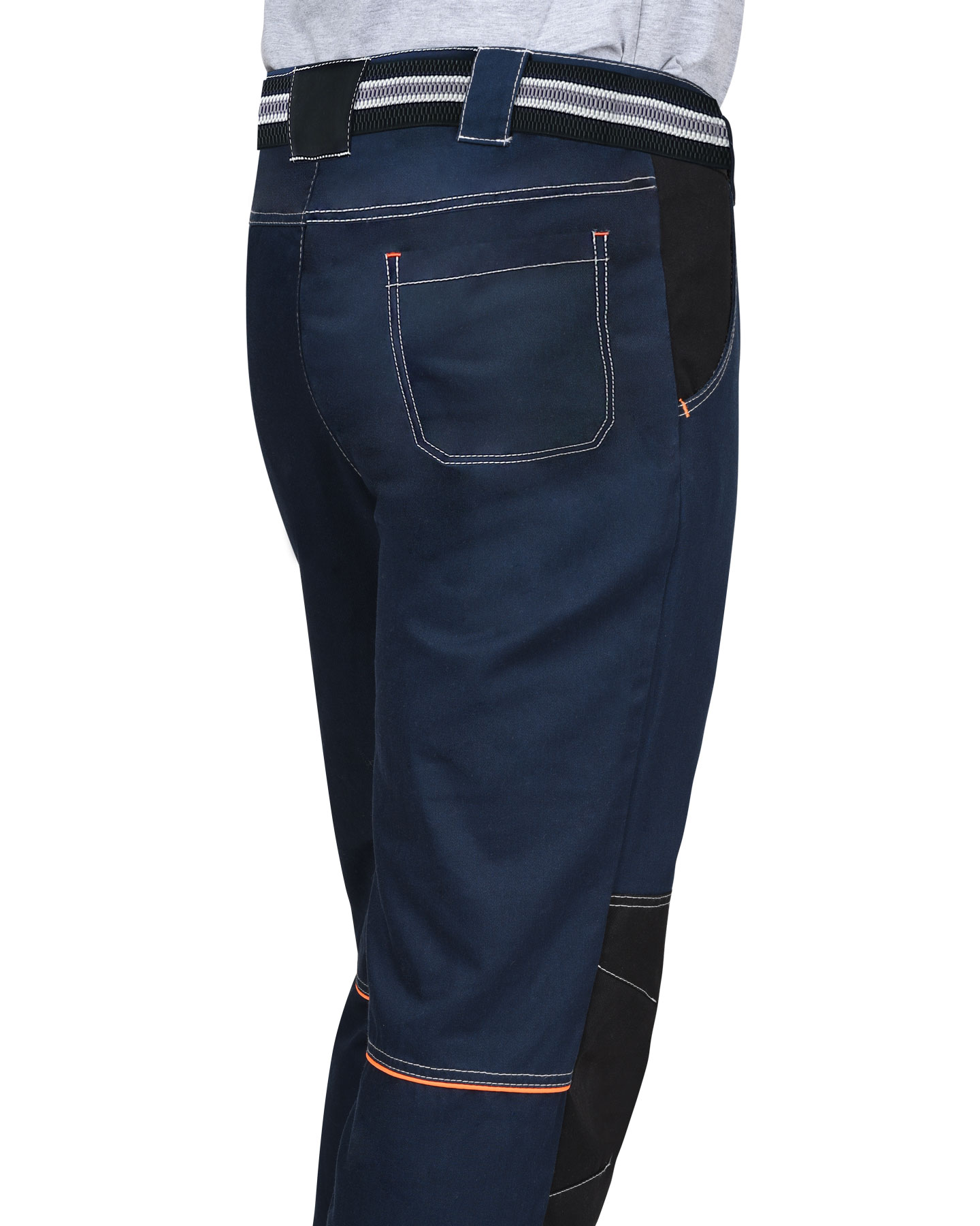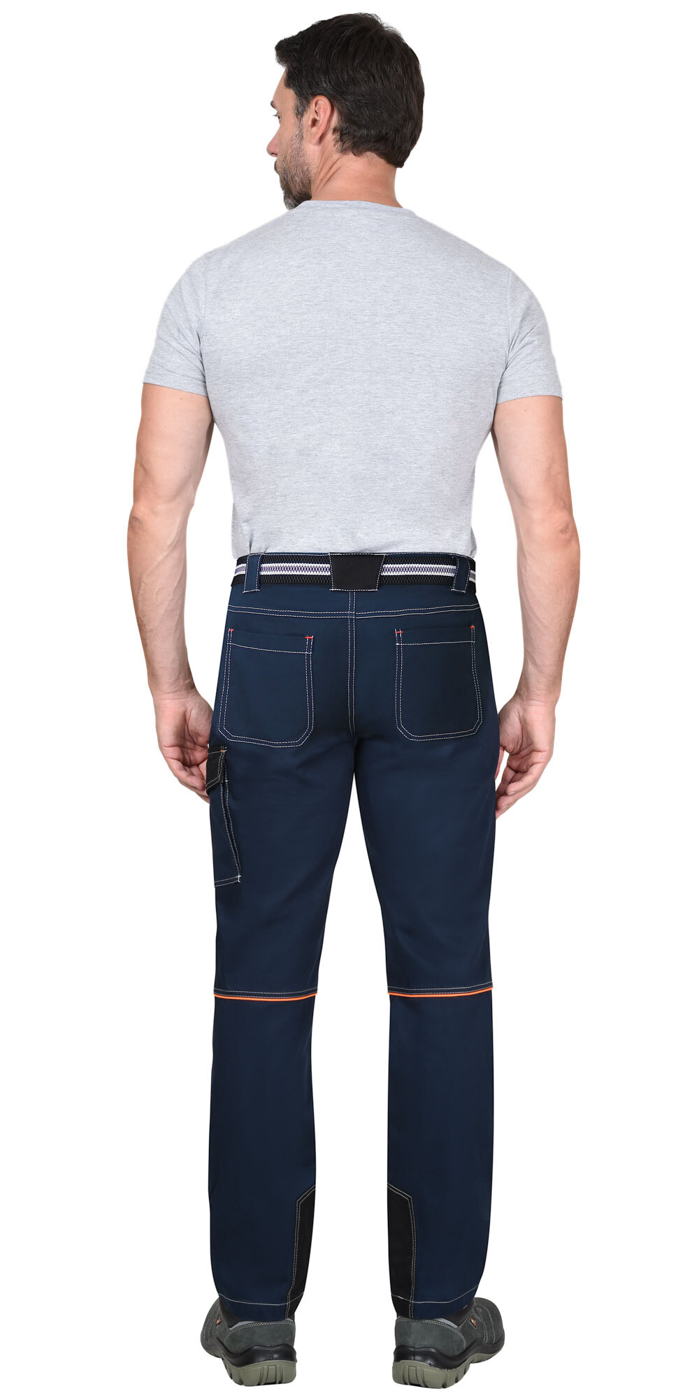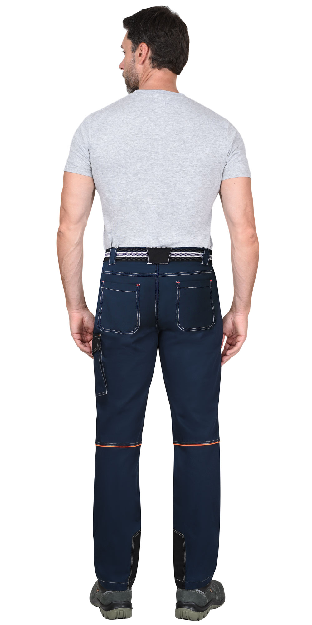 Брюки летние со съемным ремнем из смешанной ткани «Карелии-260» с водоотталкивающей пропиткой. Брюки с застежкой гульфика на молнию. Передние половинки с боковыми внутренними карманами и объемными наколенниками. На левом боковом шве накладной полуобъемный карман с фигурным клапаном на липучку. Задние половинки с кантом контрастного цвета, кокеткой и накладными фигурными карманами. По шаговым швам брюк усиленные фигурные накладки. Пояс брюк с широкими шлевками.