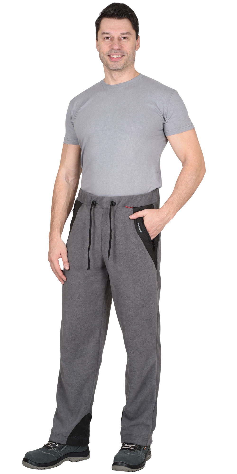 Брюки прямого покроя; с притачным поясом стянутым эластичной тесьмой и шнуром с фиксаторами, с боковыми вертикальными карманами, застегивающимися на молнию. На брюках располагаются декоративные вставки из ткани Дюспо, сверху в области бокового шва и снизу по шаговому шву. ГОСТ 25295-2003