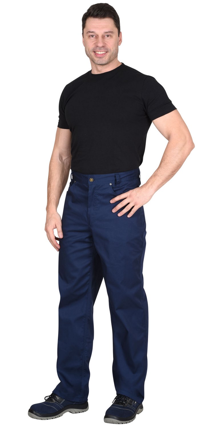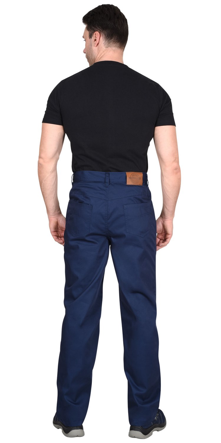 Брюки с застежкой спереди на тесьму "молния", боковыми внутренними карманами, отрезной кокеткой и двумя накладными карманами на задних половинках, с притачным поясом со шлевками, застегивающимся на петлю и пуговицу. Со стороны спинки справа на пояс настрачивается кожаная нашивка-логотип "Сириус".