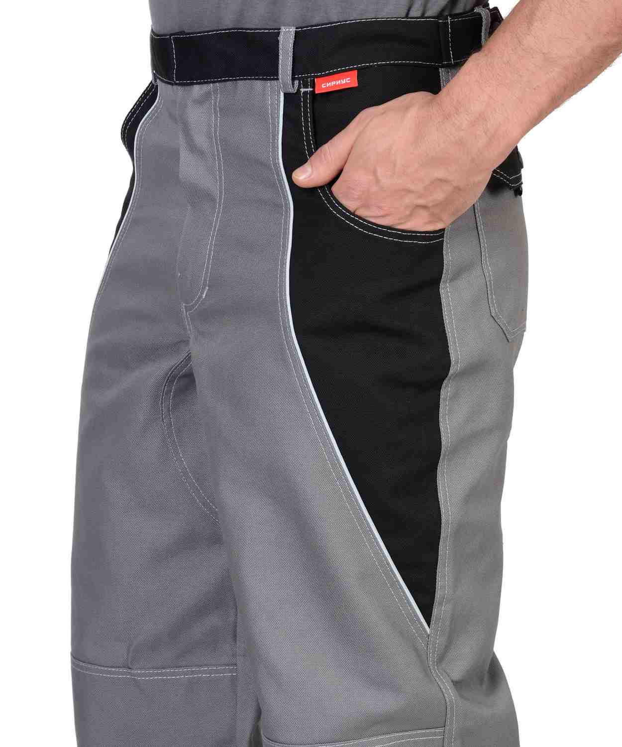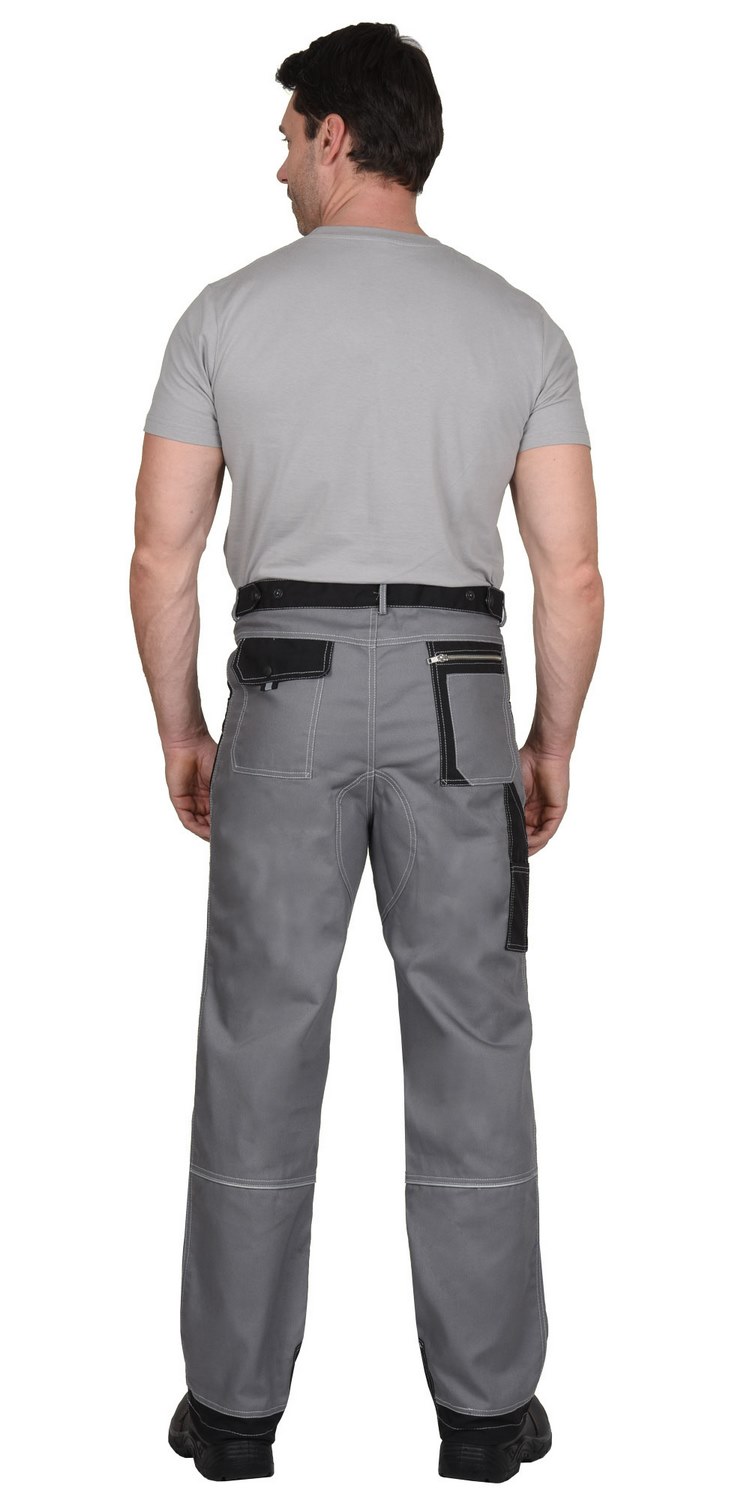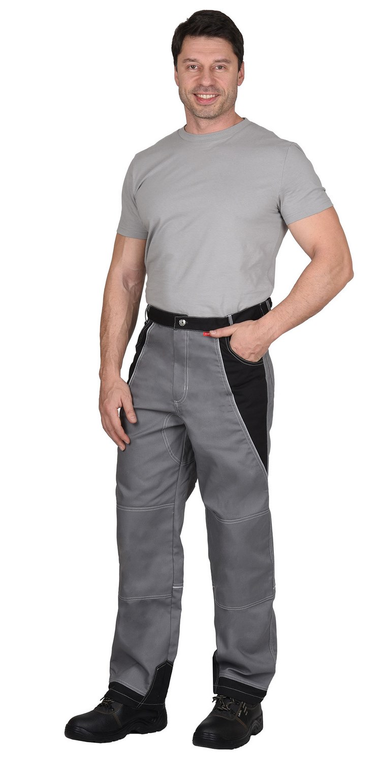 Брюки прямые, с застёжкой спереди на тесьму «молния», с притачным поясом застёгивающимся на 1 петлю и 1 пуговицу, с 5 шлевками и 2 патами, с внутренними боковыми карманами и наколенниками, с усилительными накладками по шаговому шву и по низу брюк, с накладными задними карманами, с карманом для инструментов. На задних половинках предусмотрен СВ кант для сигнальной видимости.