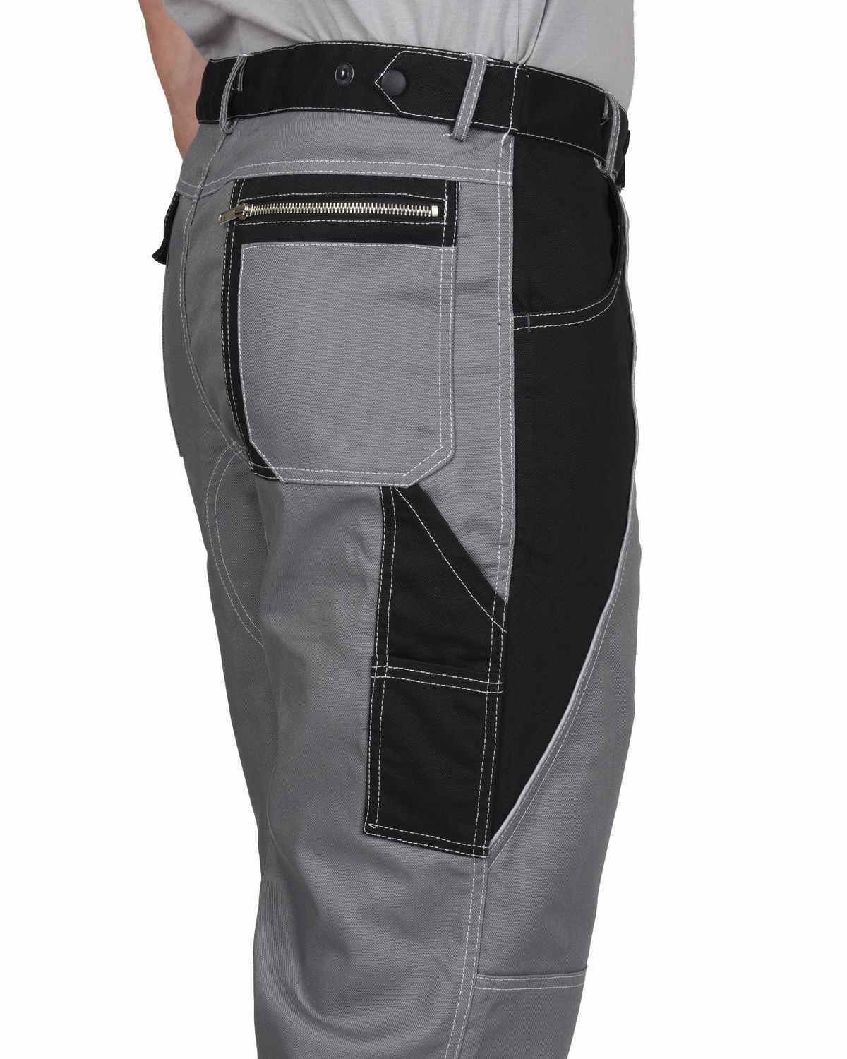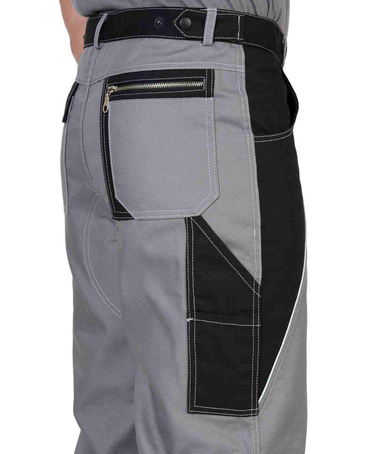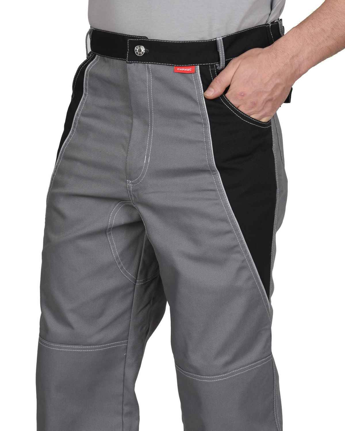 Брюки прямые, с застёжкой спереди на тесьму «молния», с притачным поясом застёгивающимся на 1 петлю и 1 пуговицу, с 5 шлевками и 2 патами, с внутренними боковыми карманами и наколенниками, с усилительными накладками по шаговому шву и по низу брюк, с накладными задними карманами, с карманом для инструментов. На задних половинках предусмотрен СВ кант для сигнальной видимости.