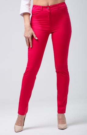 Брюки женские, зауженные к низу с застежкой гульфик на молнии по центральному шву, отрезным поясом, с застежкой на закрытую кнопку.