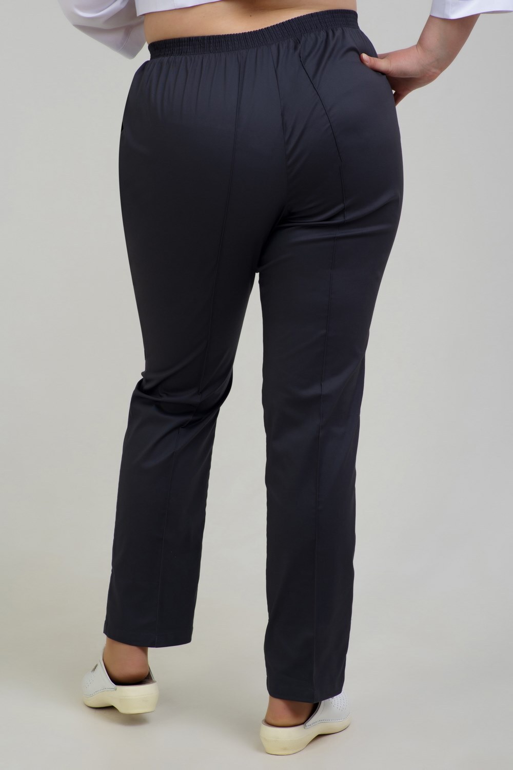 На задних половинках по центру брючин стрелки, зафиксированные строчкой.