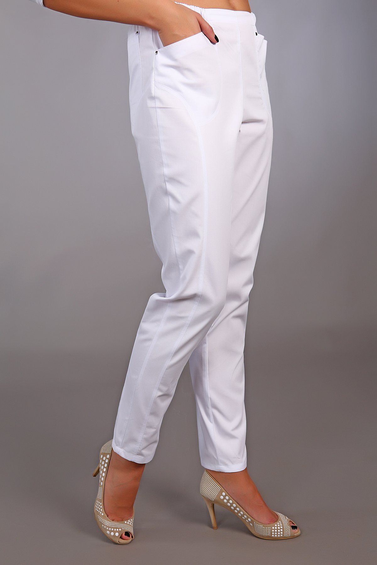 Медицинские зауженные женские брюки с карманами.