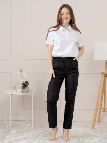 Брюки медицинские женский со стрелками, пояс отрезной простроченный на многошовной машине, два кармана спереди.