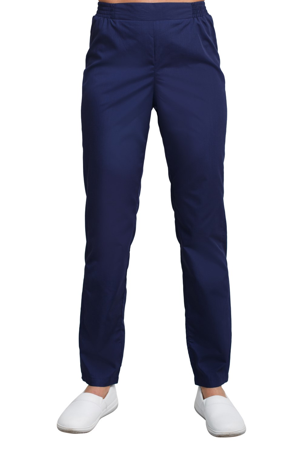 Пояс брюк с продернутой эластичной резиной, фиксированной тремя строчками на расстоянии 1,0 см друг от друга и вставкой посередине переда.
