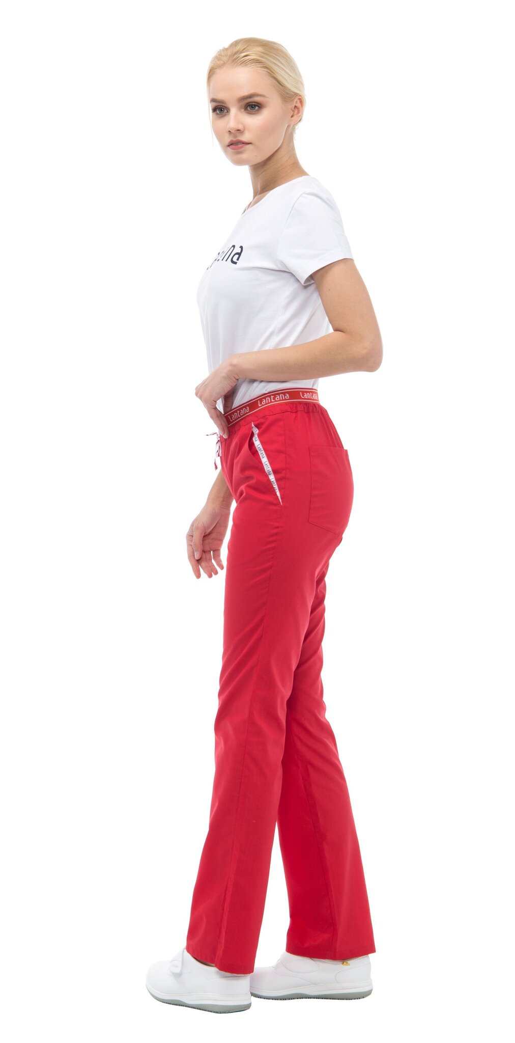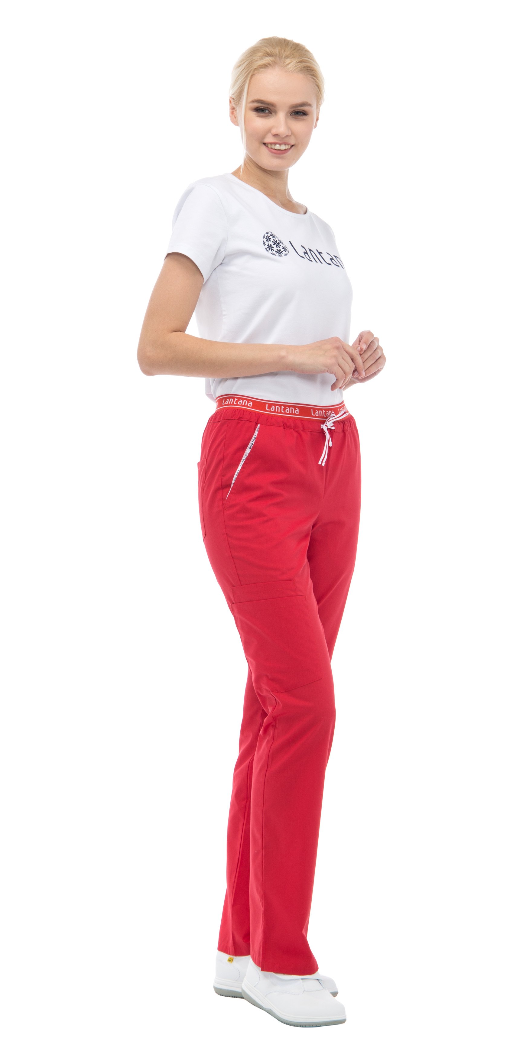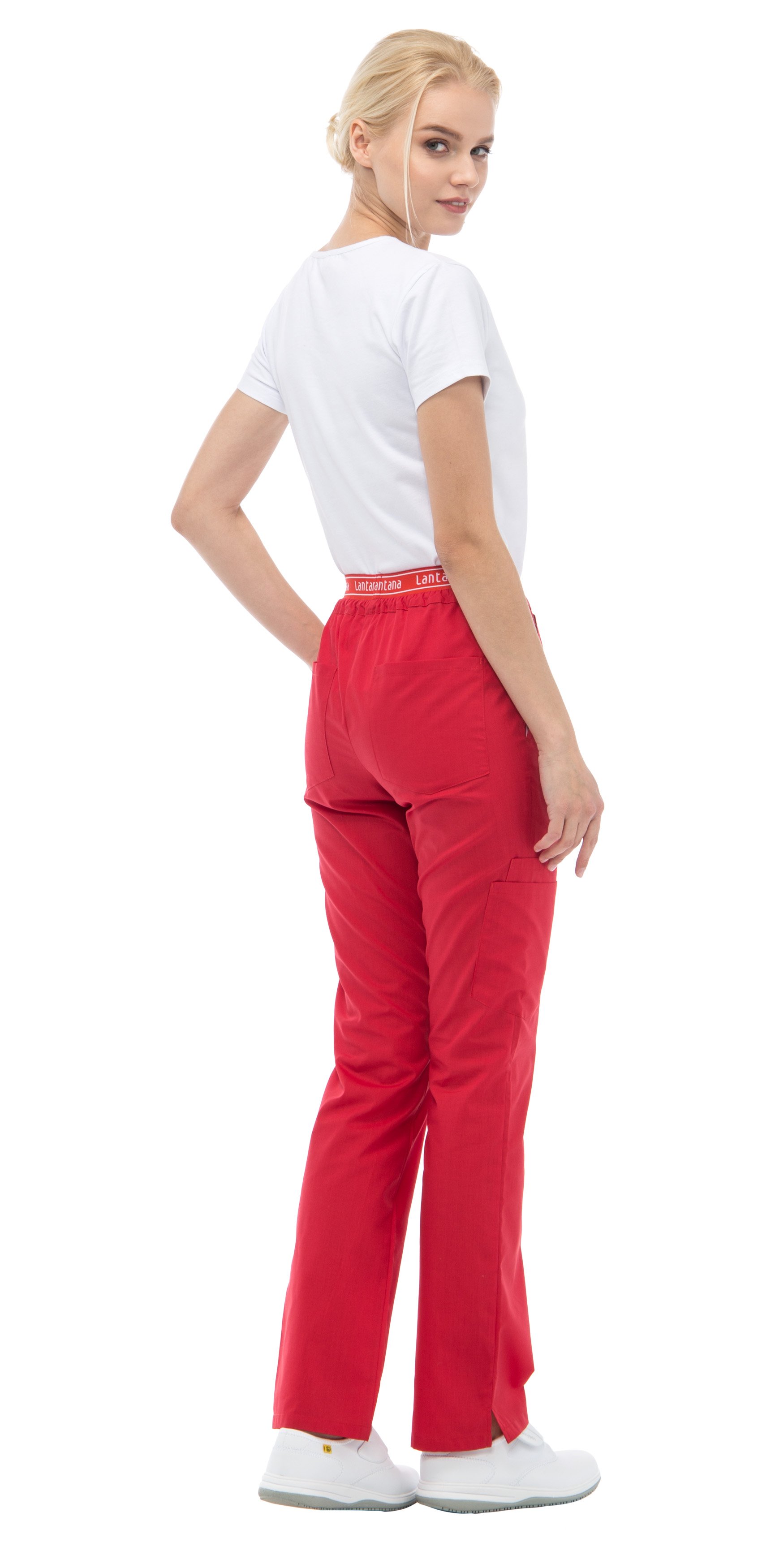 Брюки прямого кроя с поясом по талии из широкой резинки с логотипом бренда и кулисой с тесьмой. Верхние боковые карманы по переду брюк. Накладные карманы на задних половинках. Двойной карман на уровне середины бедра на правой брючине. Небольшие разрезы по низу брюк.