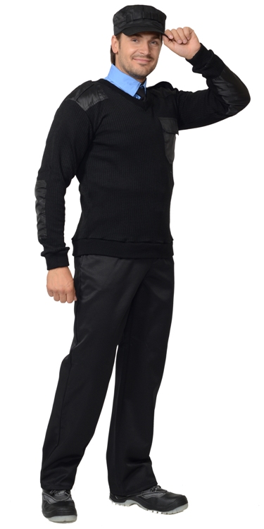Пряжа п/ш (шерсть/нитрон), чёрная, с накладками из курточной ткани.