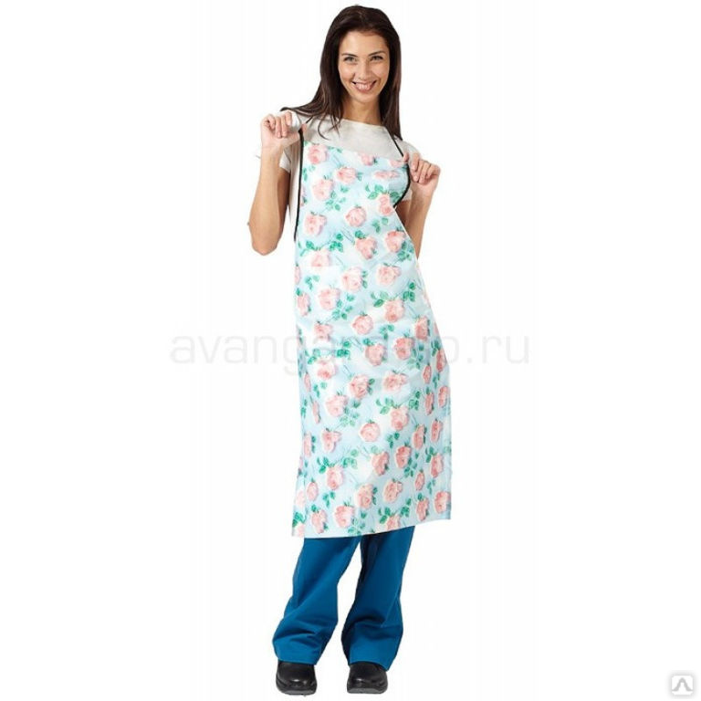 Фартук с цельнокроеным нагрудником, с замкнутой шейной бретелью. К верхним боковым углам притачана тесьма для завязывания. Рекомендуется работникам пищевой промышленности.