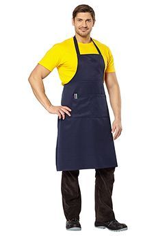 Фартук длиной 95 см, с замкнутой шейной бретелью, с широким накладным карманом.