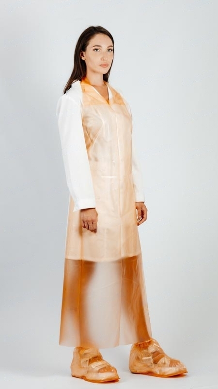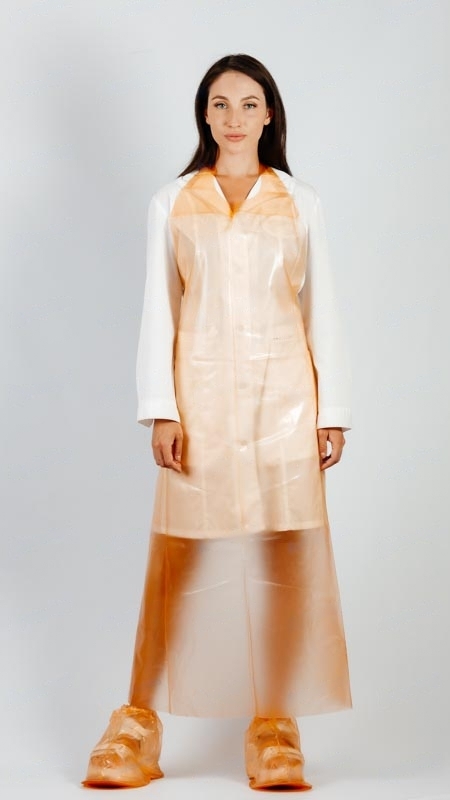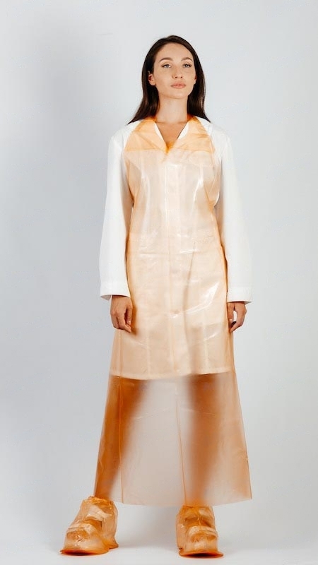 Фартук представляет собой дополнительное средство индивидуальной защиты, надеваемое поверх основной спецодежды. Фартук защищает грудь и живот работающего от загрязнения радиоактивными, токсичными веществами, кислотами и щелочами средней концентрации при выполнении ремонтных, монтажных, дезактивационных и других работ.