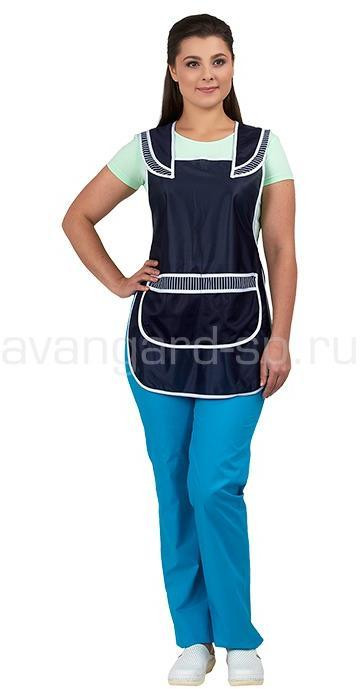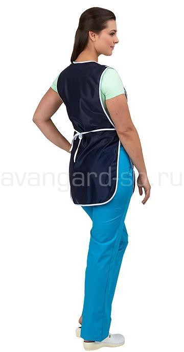 Фартук с декоративными накладными деталями на плечах.
