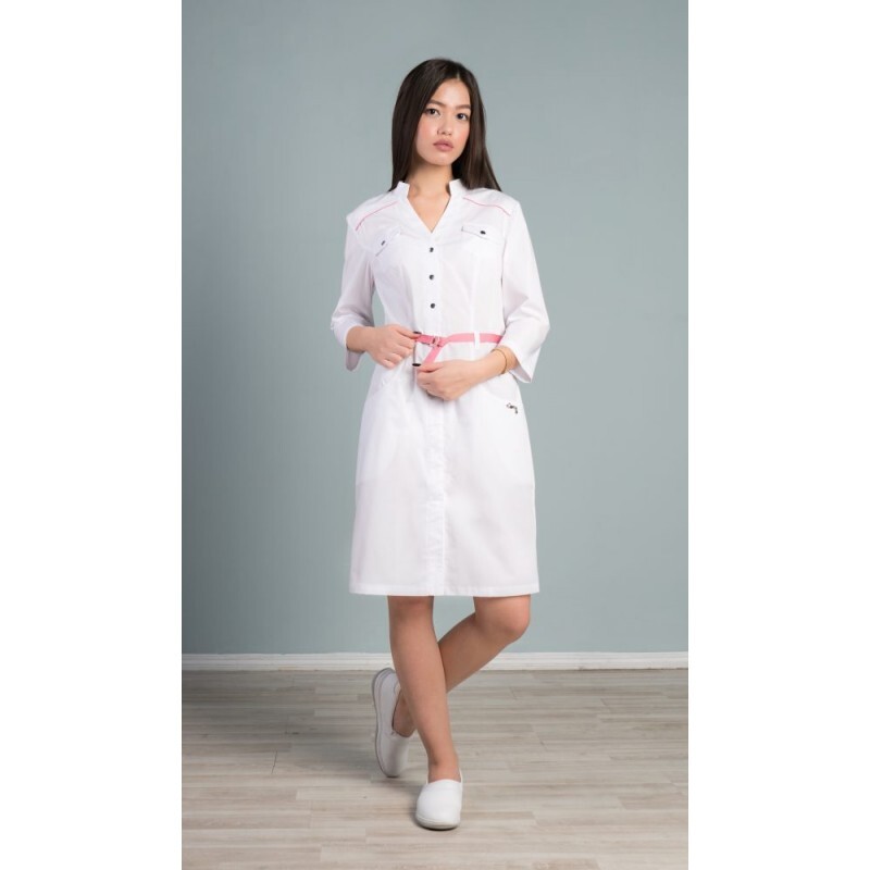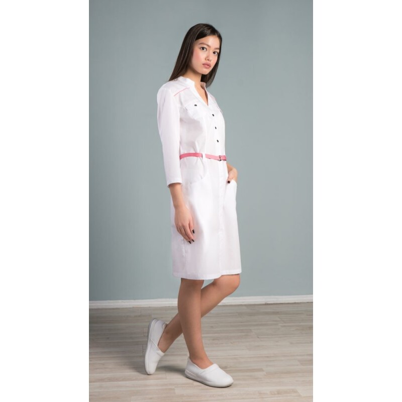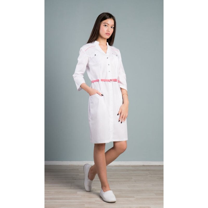Халат женский, полуприлегающего силуэта, с застежкой по планке борта на кнопки.