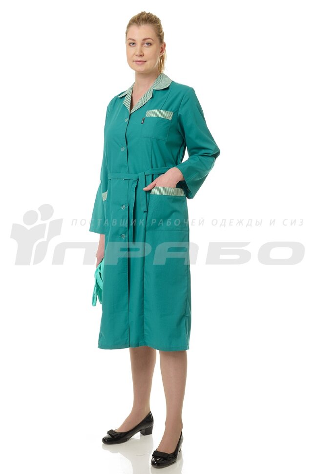 Халат для предприятий сферы обслуживания и торговли с вертикальными рельефами, центральной бортовой застежкой на пуговицы.