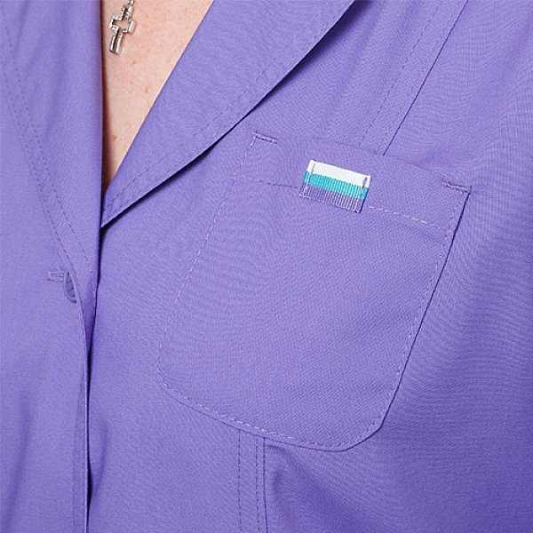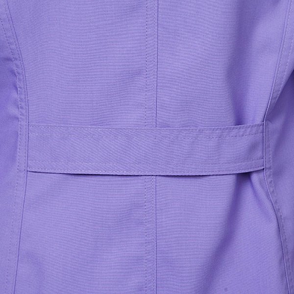 Халат полуприлегающего силуэта с рельефами, с центральной застежкой на пуговицы, с отложным воротником и лацканами, с нагрудным и боковыми карманами. На спинке шлица и хлястик. Рукава длинные.
