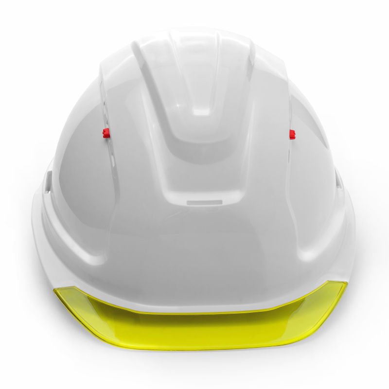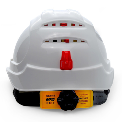 Корпус выполнен из материала Termotrek, имеет козырек из прозрачного материала. Внутренняя оснастка ЭТАЛОН с тканными амортизационными лентами, несущая/ затылочная лента с плавной регулировкой RAPID. Пазы в корпусе каски для совместного ношения с защитными лицевыми щитками с креплением на каске и наушниками противошумными с креплением на каске. В комплект касок Абсолют входит адаптер с держателем для очков открытого типа, кронштейны для крепления щитков КБТ ВИЗИОН, текстильный подбородочный ремень с креплением к корпусу каски в 4-х точках и обтюратор.