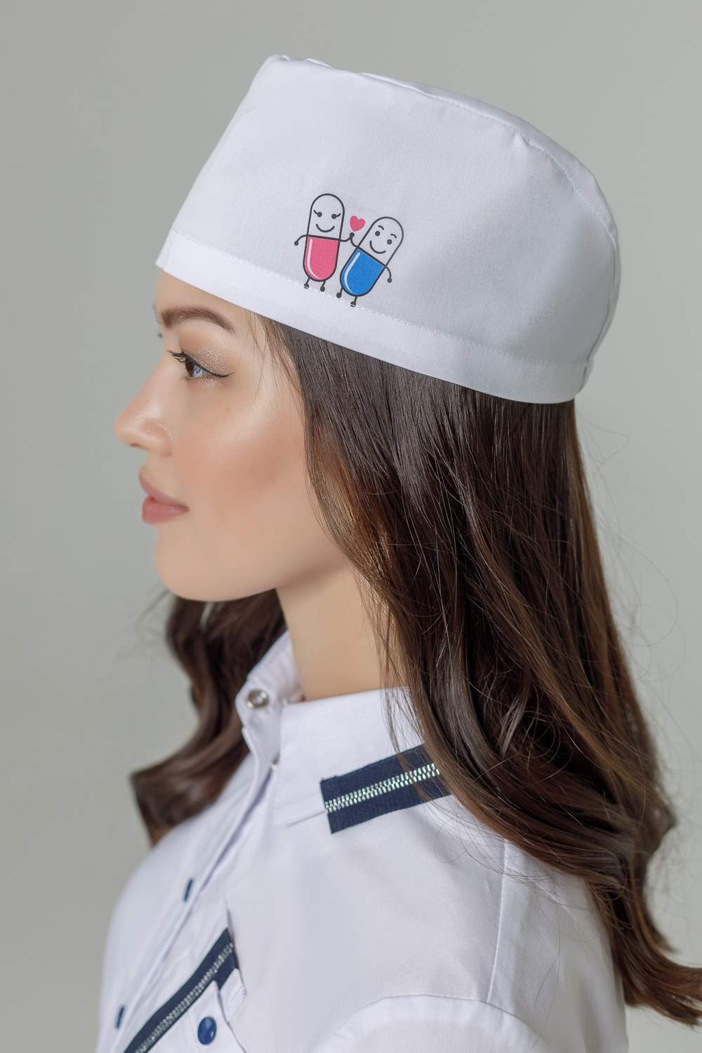 Убор головной медицинский — колпак состоит из боковой стенки и донышка. Объем колпака регулируется резинкой, настроченной сзади