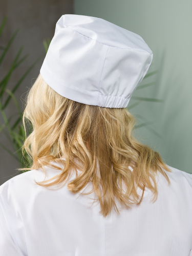 Колпак медицинский на резинке изготовлен из смесовой ткани «Элит-145». Она содержит 50% хлопка, 50% синтетических волокон. Подойдет как мужчинам, так и женщинам. Цвет - белый.