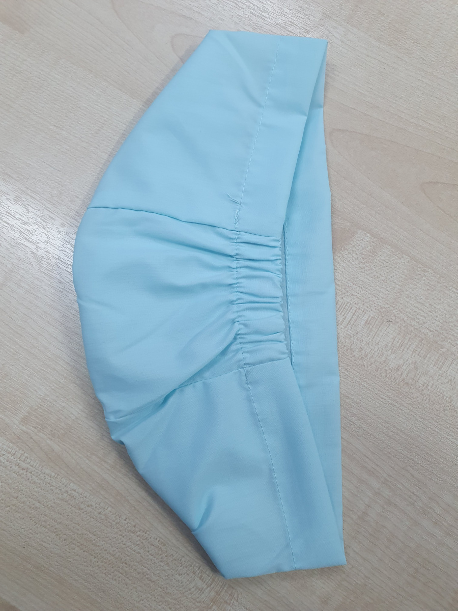 Колпак медицинский на резинке изготовлен из смесовой ткани «Тиси». Она содержит 35% хлопка, 65% синтетических волокон. Подойдет как мужчинам, так и женщинам. Цвет - светлая бирюза.