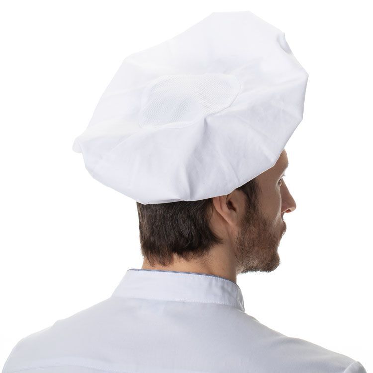 Колпак поварской классический с объёмным за счёт складок верхом. В донышке вставка из трикотажного полотна Coolmax® для поддержания оптимального температурного баланса и отвода влаги. Застёжка сзади на липучку с возможностью регулировки объёма головного убора по голове.