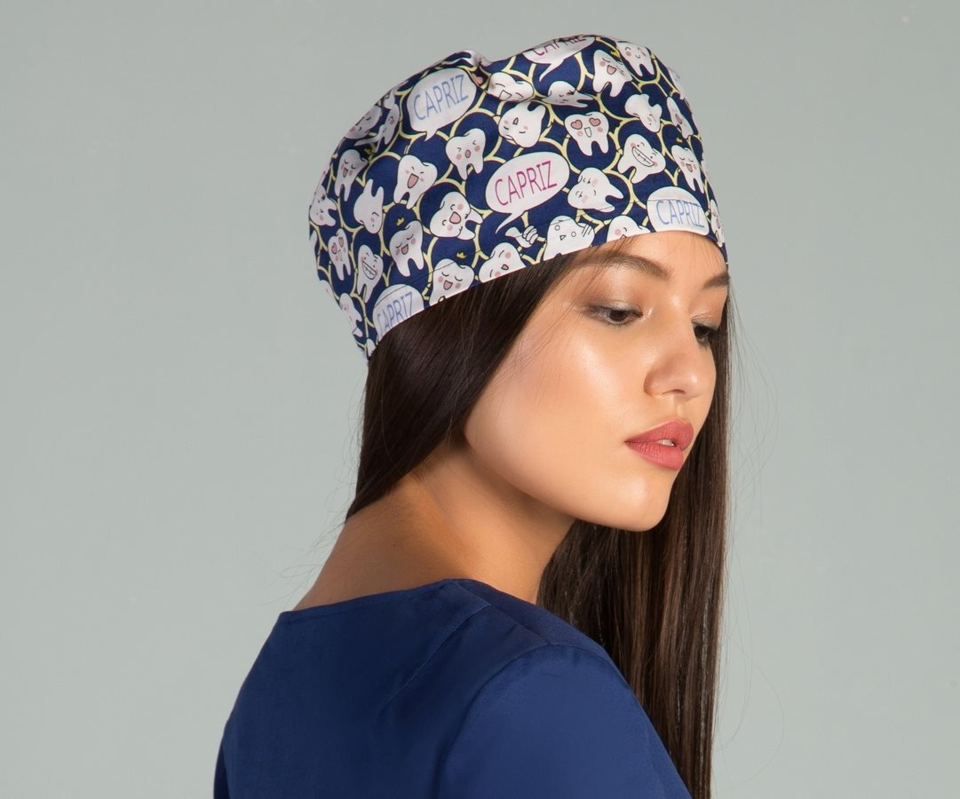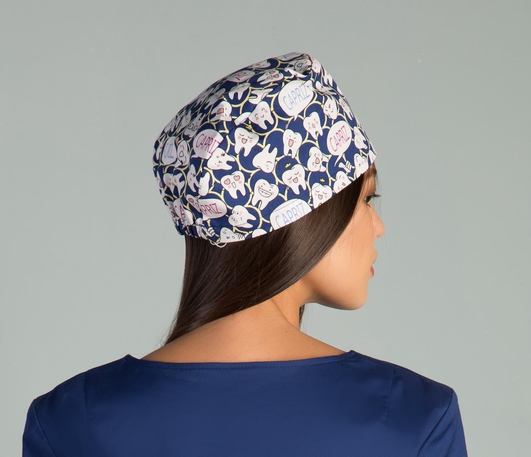 Модный медицинский колпак (шапочка) c весёлым принтом принтом "Зубики" отлично подойдет для медиков-стоматологов.
