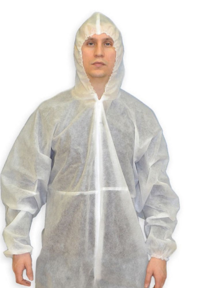 Комбинезон одноразовый с капюшоном закрывает не только тело с одеждой, но и волосы, что не требует использования дополнительной шапочки. Каспер полный комбинезон с капюшоном на молнии. По нижней части рукава, линии талии и капюшону проходит эластичная лента. Стоимость спец-костюма определяется плотностью материала и объемом оптовой партии. Одноразовый спец-костюм изготавливается из полипропилена (спандбонд). Этот гипоаллергенный нетканый материал белого цвета очень легок и при этом довольно прочен. Он устойчив к высокой влажности, не поддается стиранию, выдерживает серьезные перепады температур и не накапливает статического электричества. Спандбонд хорошо пропускает воздух, позволяя коже дышать, и не вызывает дискомфорта во время ношения защитного средства. Надевать такой костюм можно даже поверх обычной одежды, ведь его обладателю гарантируется полная безопасность гардероба.