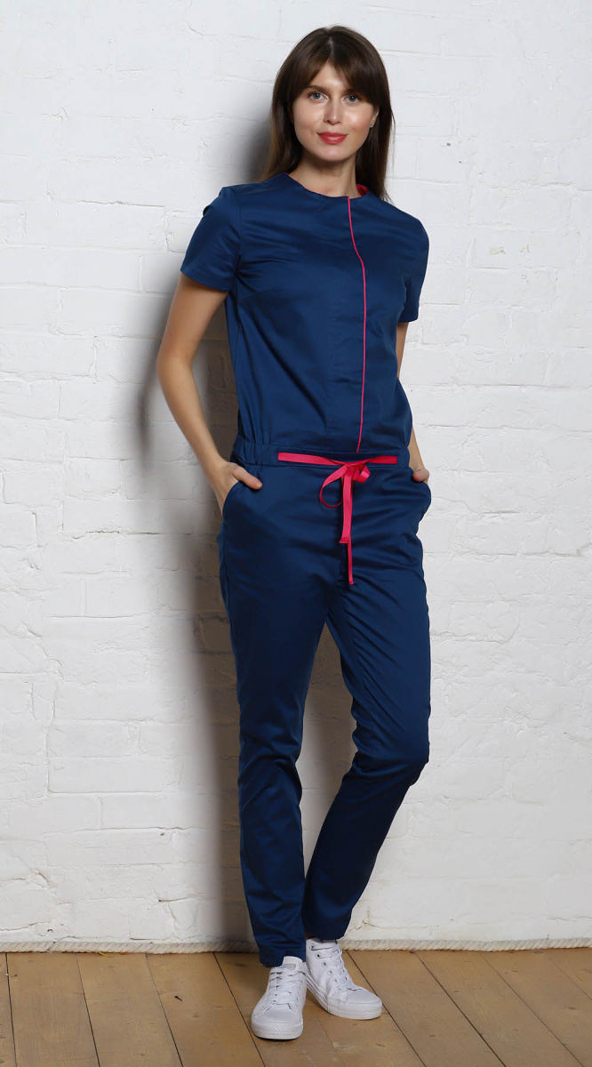 Комбинезон женский, полуприлегающего силуэта, с центральной бортовой супатной застежкой на лифе на 6 кнопок, отрезной ниже линии талии.