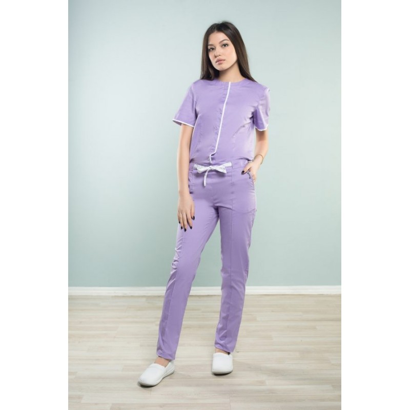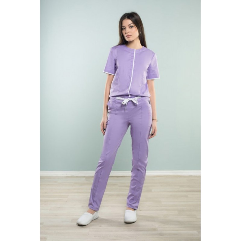Правый подборт, обтачки горловины, п/пояса, бочок брюк выполнены из отделочной ткани.