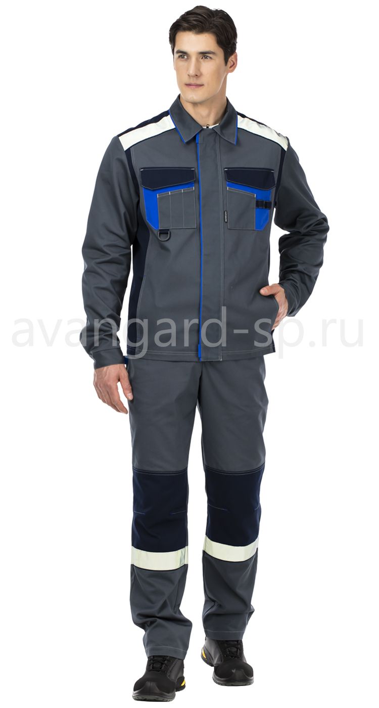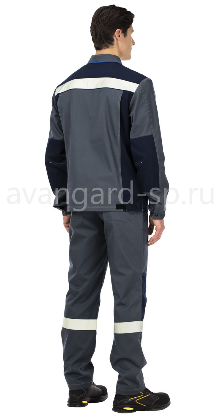 Костюм из облегченной ткани с высоким содержанием хлопка, состоит из куртки и брюк.