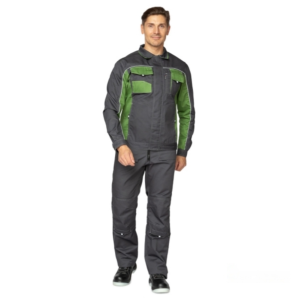 Карманы. Куртка: верхние накладные: слева двойной усиленный карман с отделением для телефона и карандаша; справа двойной карман с клапаном и два открытых кармана для мелких деталей; 2 боковых нижних кармана. Входы в карманы дополнены ранцевой лентой со светоотражающим элементом для удобного расстёгивания. Полукомбинезон: 2 нагрудных накладных кармана: справа — двухслойный, верхний — из двух отделений; слева — с застёжкой на контактную ленту; на передних половинах накладные карманы, навесные трёхслойные карманы, верхний слой из трёх отделений; задние накладные карманы: слева — двойной накладной; справа на бедре — карман для инструментов.