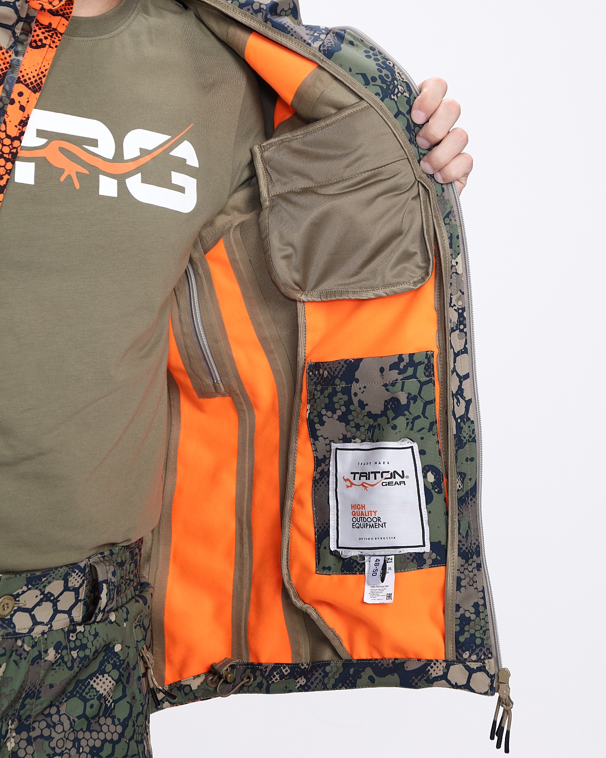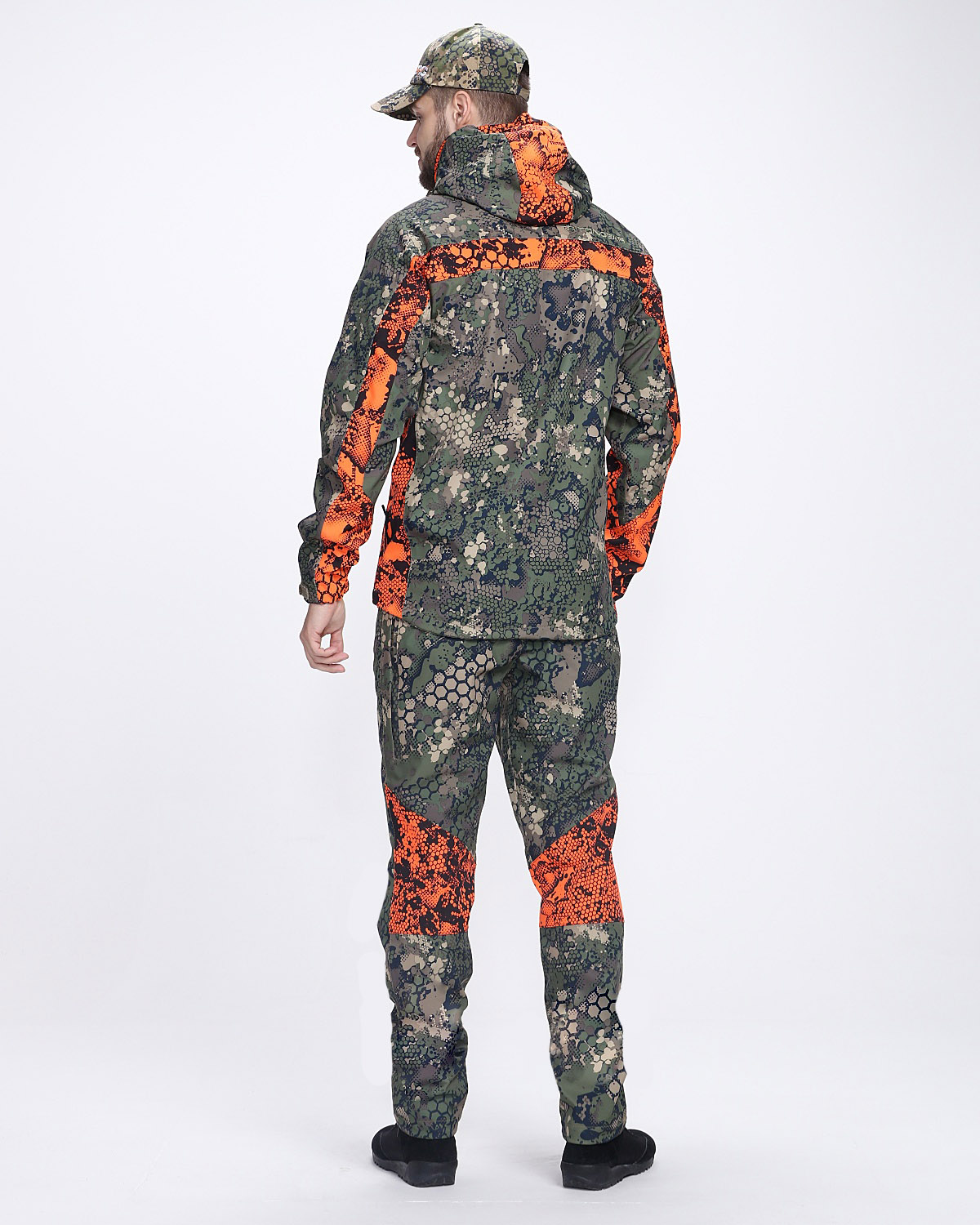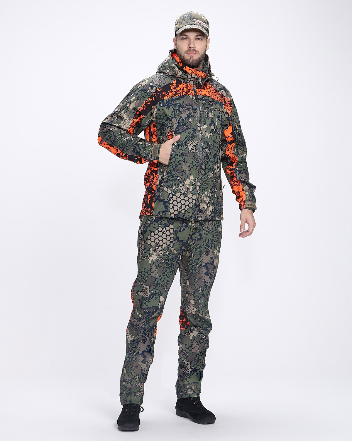 Костюм имеет современный дизайн и расцветку с фирменным принтом, придающим визуальную защитную функцию.Большое количество карманов повышает его функциональность. Съемный капюшон. Вентиляция в бедреной зоне.