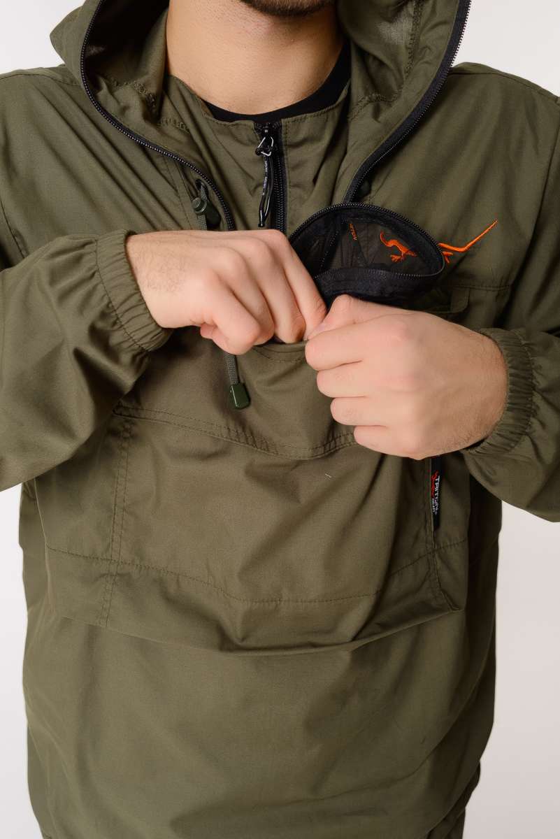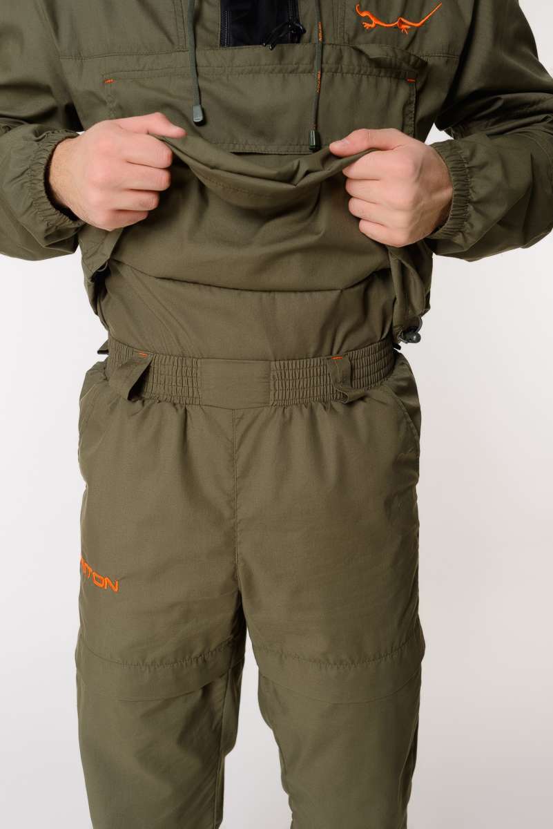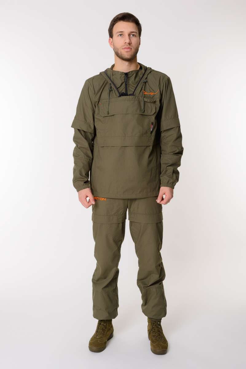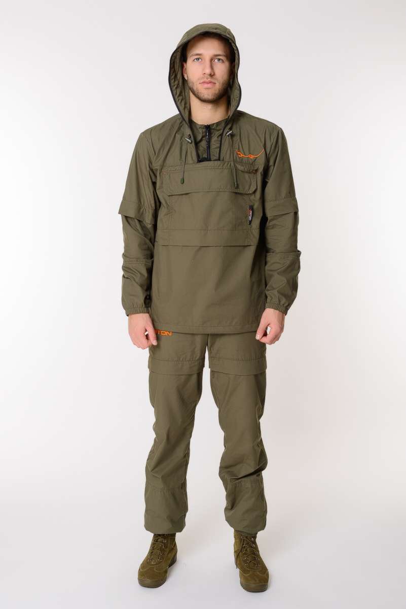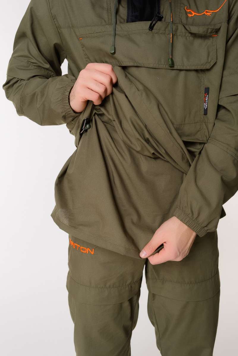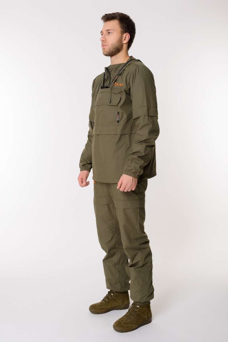 Костюм снабжен регулируемым по объёму капюшоном с фиксаторами и съёмной антимоскитной сеткой с мелкоячеистой структурой, которая прекрасно пропускает свет и не мешает обзору, хорошо защищает от мошек, комаров, гнуса и клещей.