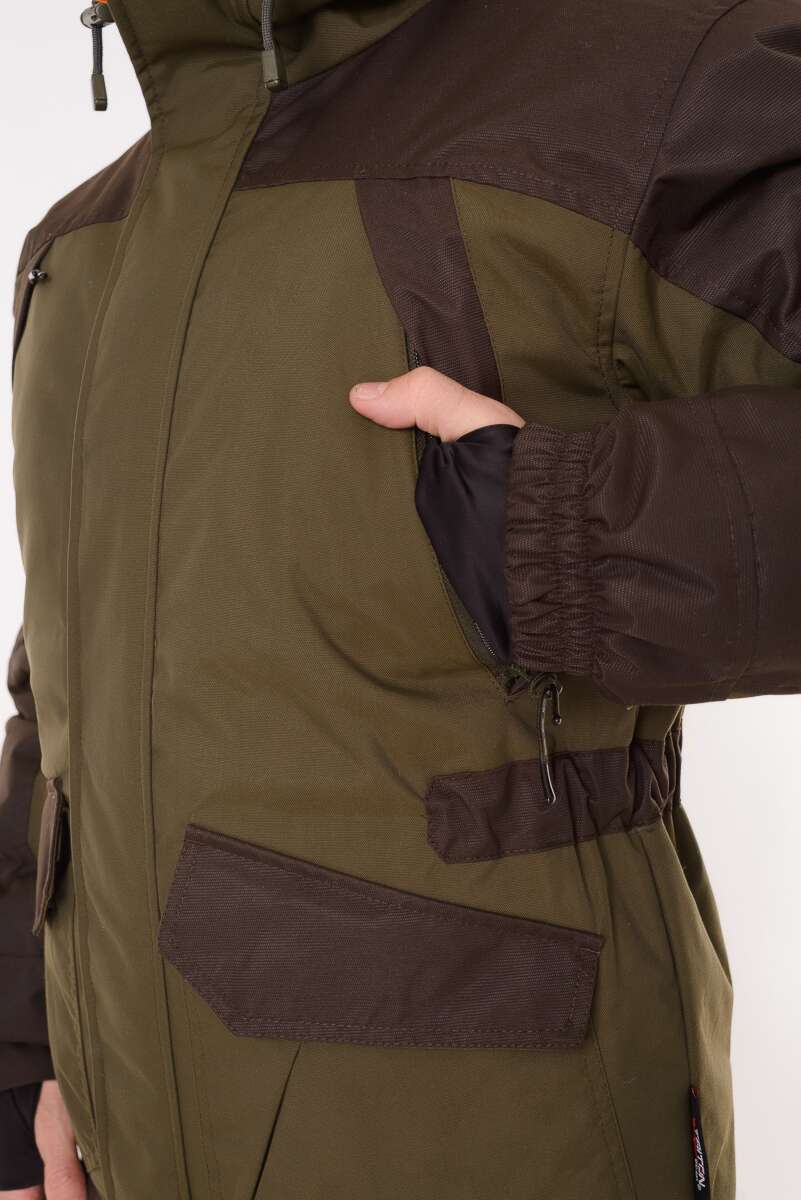 Материал: Таслан (100% нейлон) - прочная, долговечная, устойчивая к истиранию и многократным изгибам мембранная ткань нового поколения с высокими показателями влагозащиты и пароотведения. Внешняя поверхность блокирует ветер, а внутренний слой ткани защищает от избыточной влаги. Основной цвет - хаки.