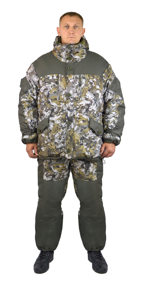 • капюшон двойной, с козырьком, имеет утягивающую кулису для регулировки по объему;