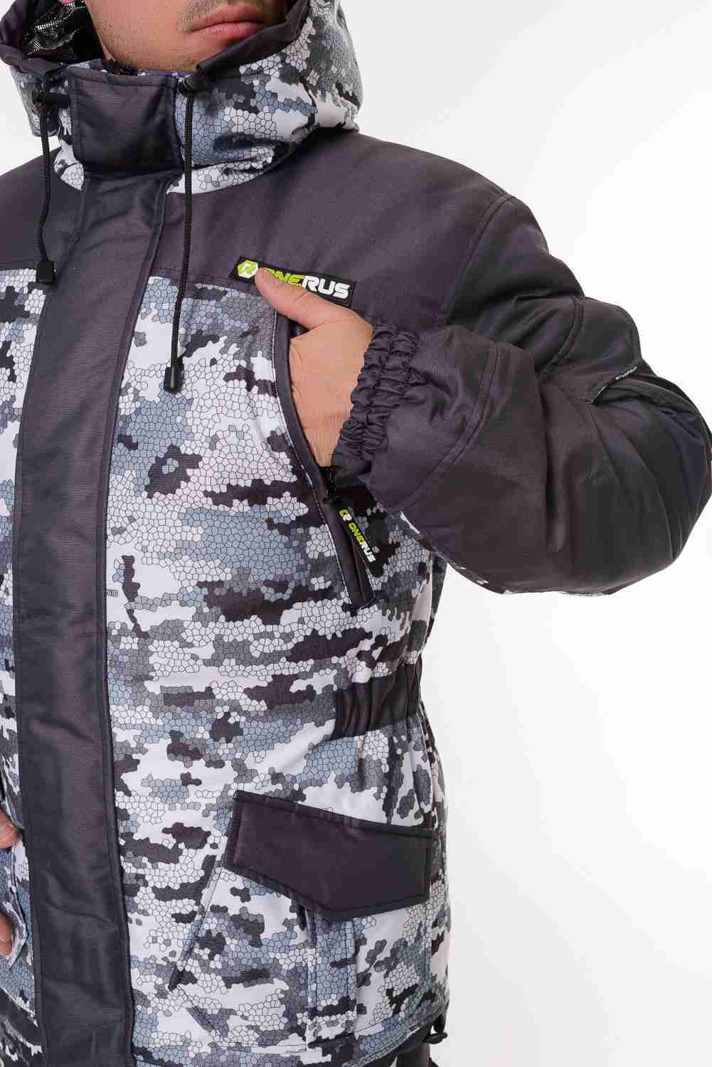 Зимний костюм OneRus "Горный -45" отлично зарекомендовал себя среди рыболовов, охотников и любителей активного отдыха. Использование современных материалов при производстве делает костюм универсальным. Основная ткань "Алова" (100% полиэстер) - трикотажное полотно с фирменным камуфляжным пиксельным принтом "OneRus", покрытое с изнаночной стороны влагоотталкивающей паропроницаемой мембранной пленкой, благодаря чему испарения выводятся с поверхности тела наружу, а с другой стороны создается защита от ветра и проникновения влаги, тем самым обеспечивается комфорт при носке. Цвет белый. Утеплитель Синтепон new (350гр/м2) более долговечен, не теряет форму и имеет высокие показатели по теплосбережению и проводимости влаги. Фольгированный подклад с антибактериальным покрытием создает дополнительную теплостойкость, отражая выделяемое телом тепло и удерживая его внутри, а микроскопические ячейки в структуре материала способствуют выведению излишек тепла и влаги наружу, способствуя созданию комфортных условий.