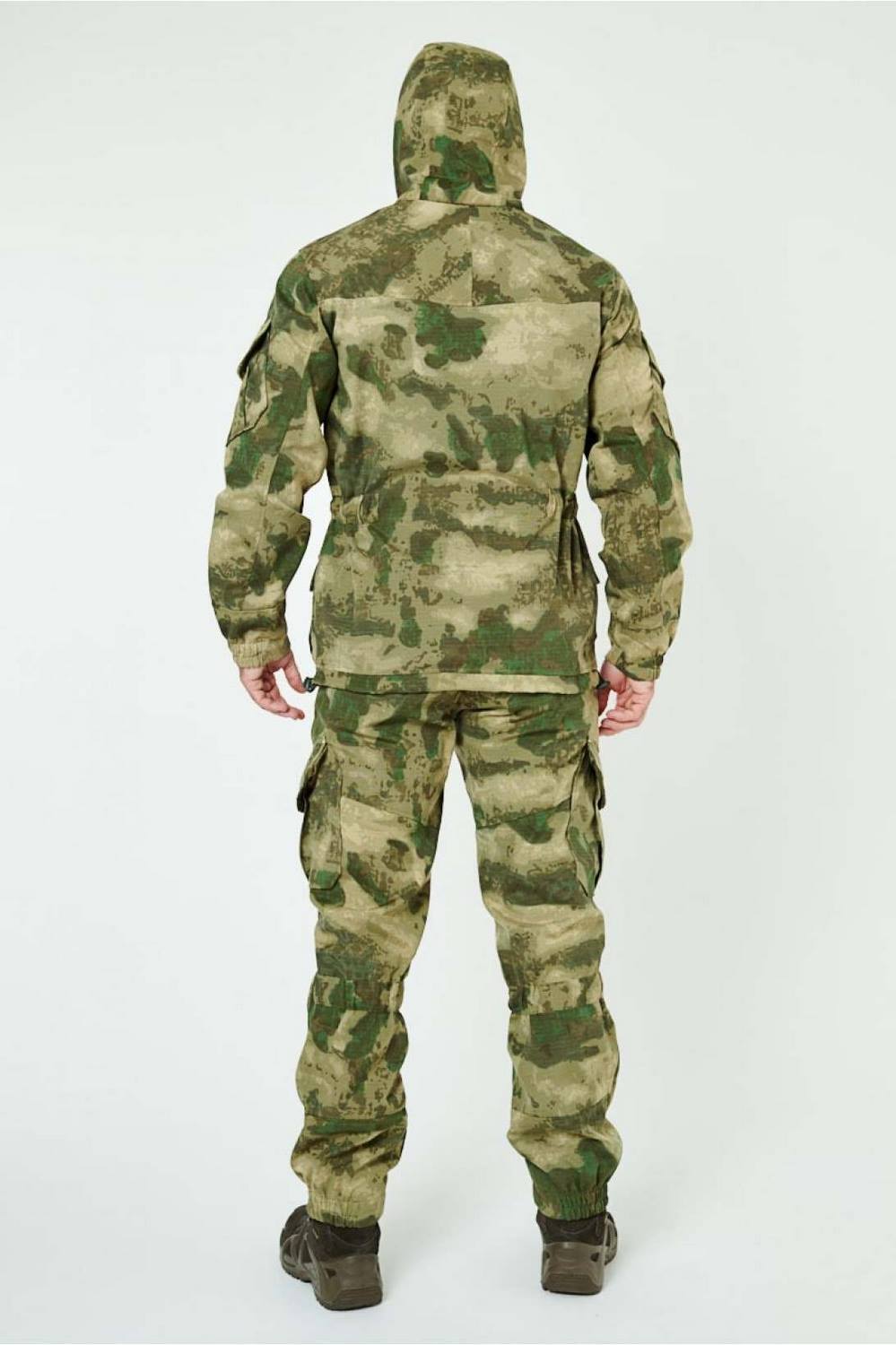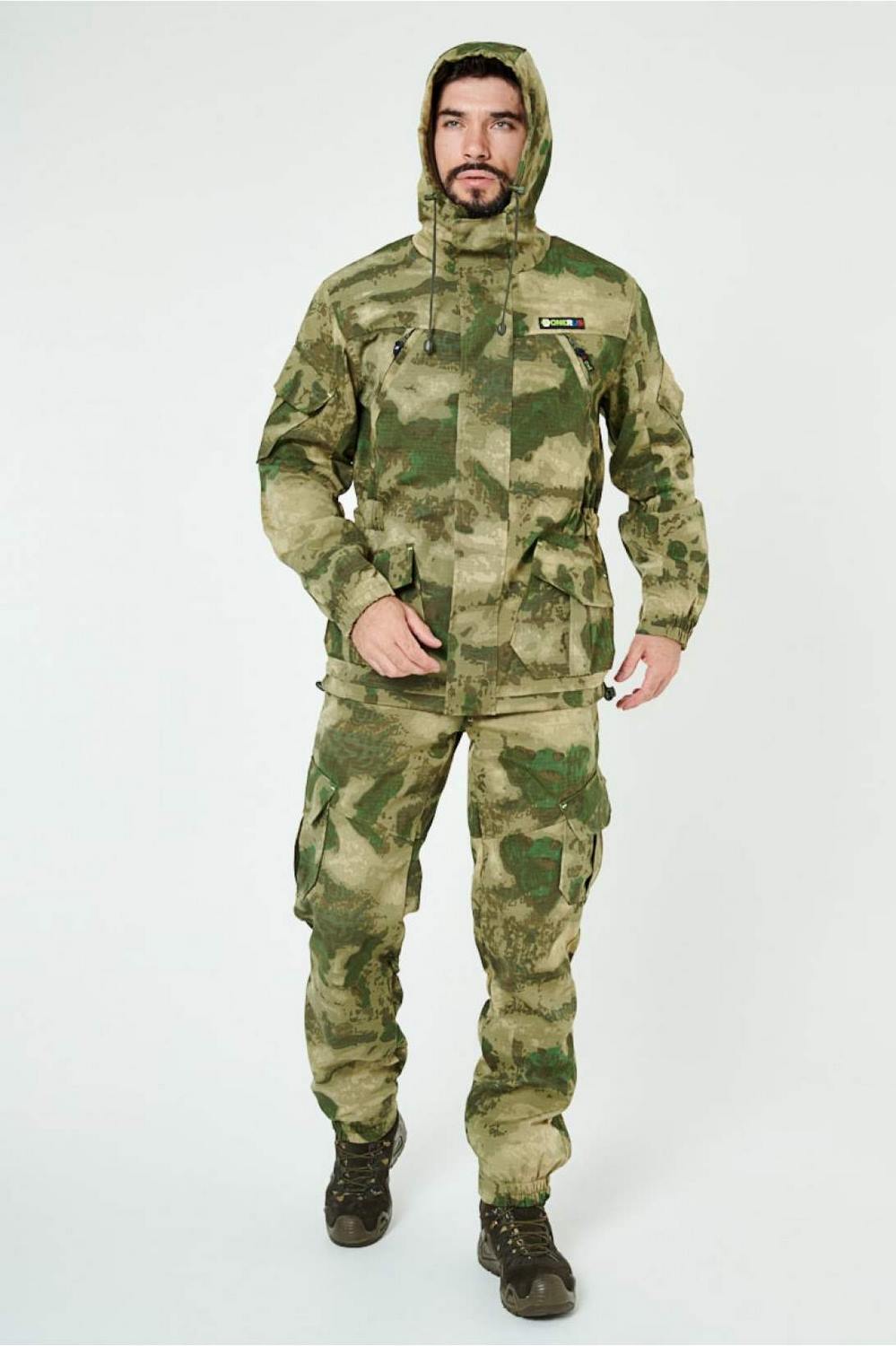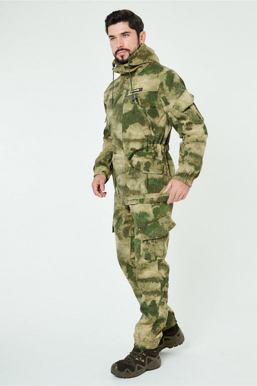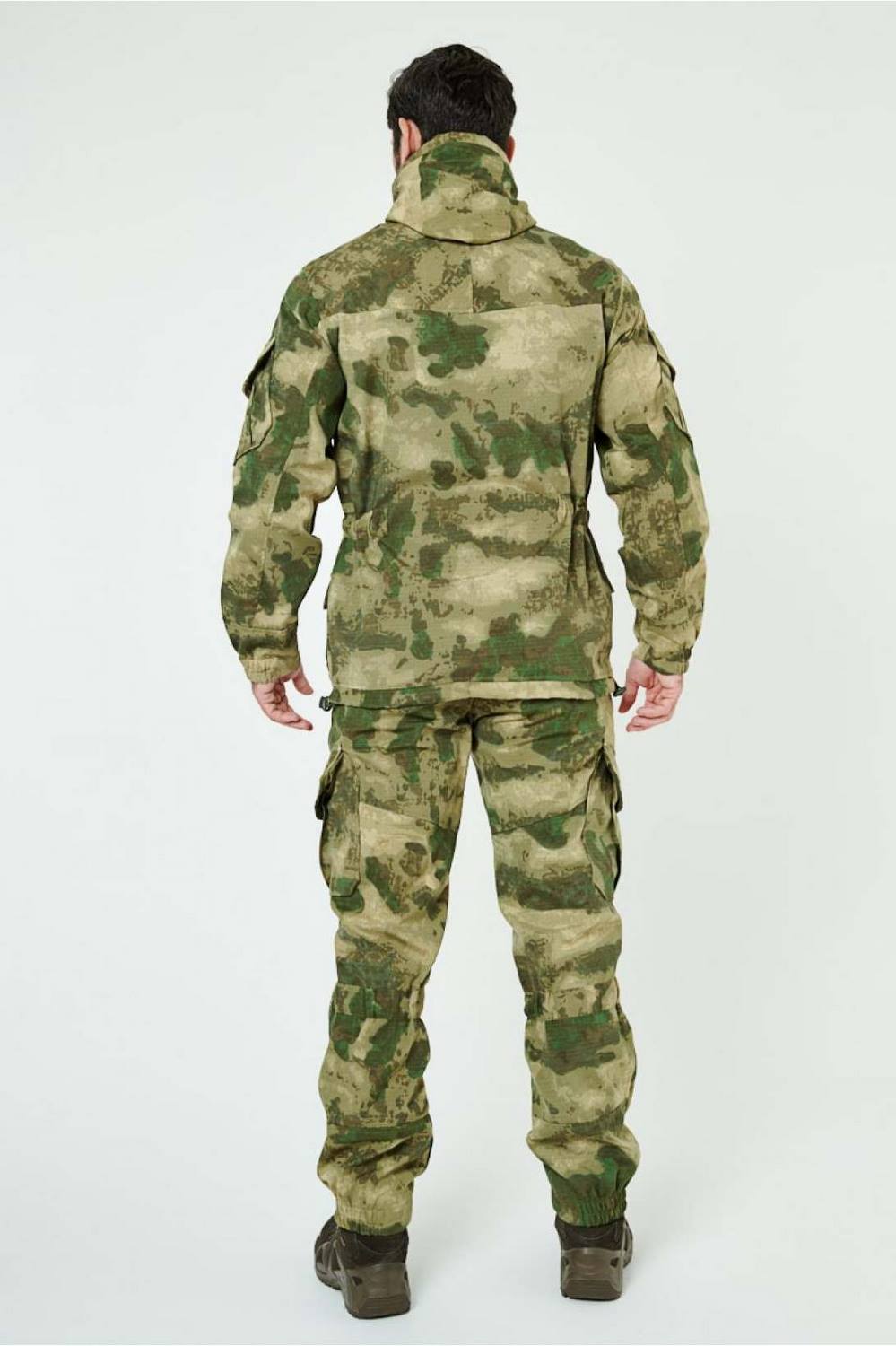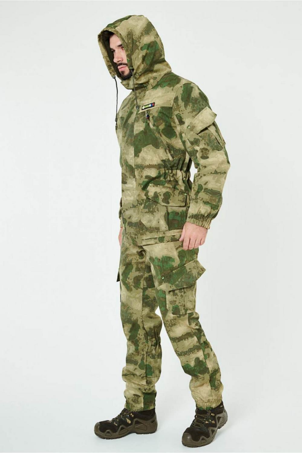 Отличается специальным анатомическим кроем, характерным для данной линии одежды. Он не стесняет движений, дает свободу перемещения в условиях пересеченной местности.