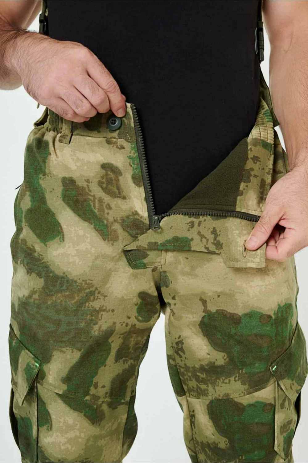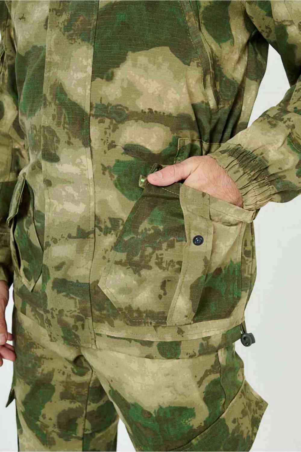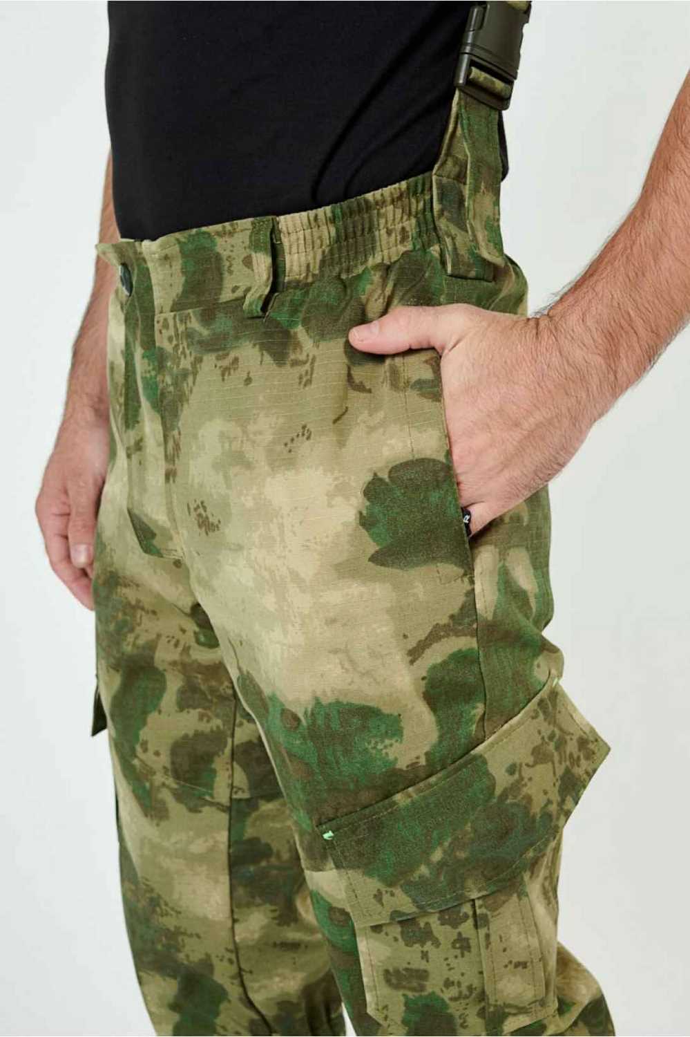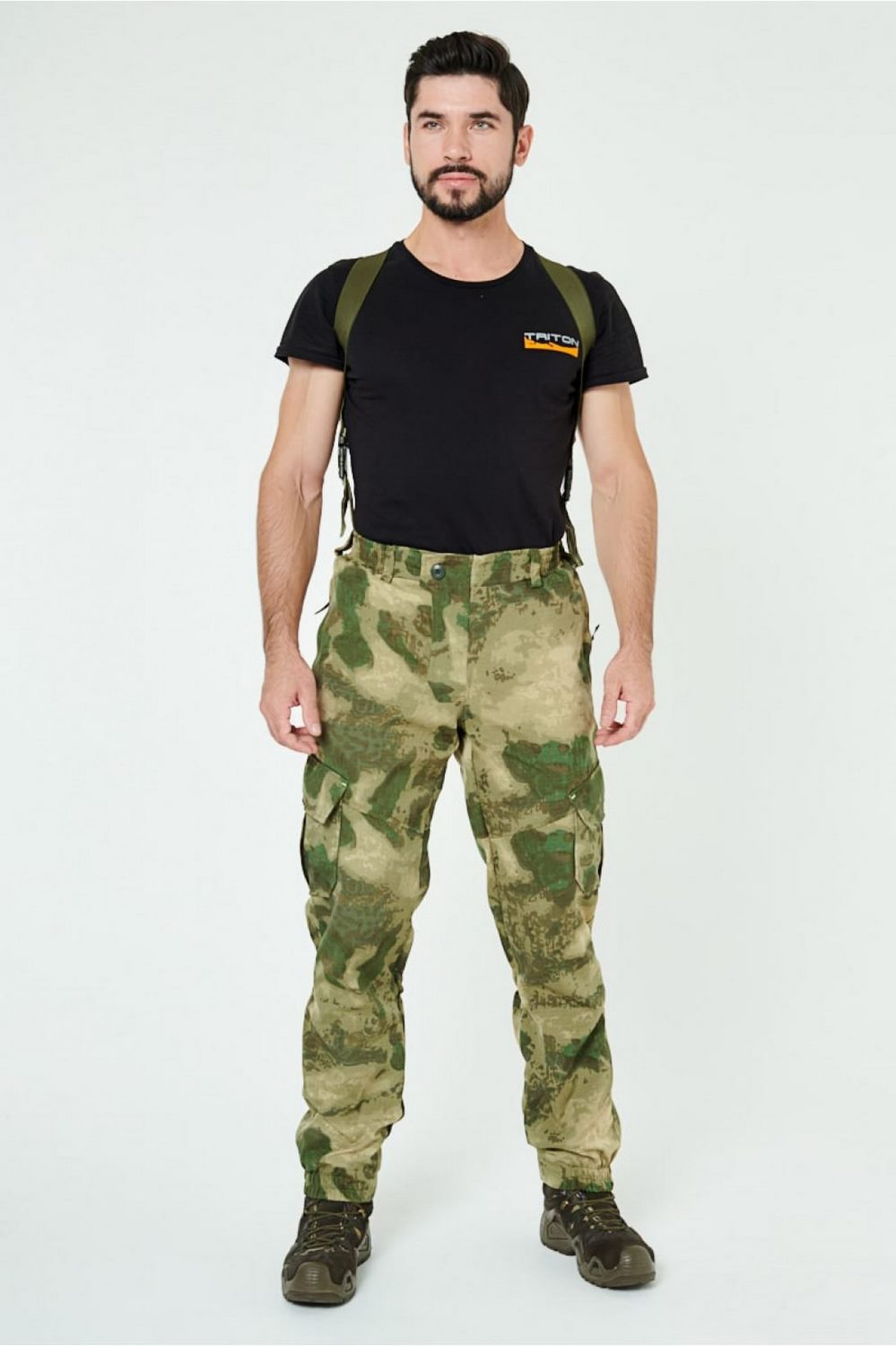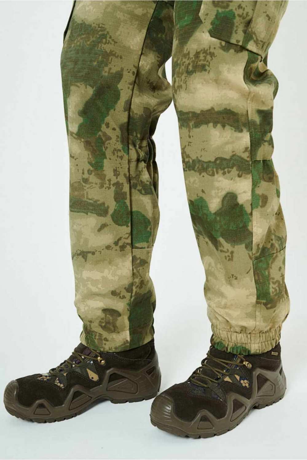 Отличается специальным анатомическим кроем, характерным для данной линии одежды. Он не стесняет движений, дает свободу перемещения в условиях пересеченной местности.
