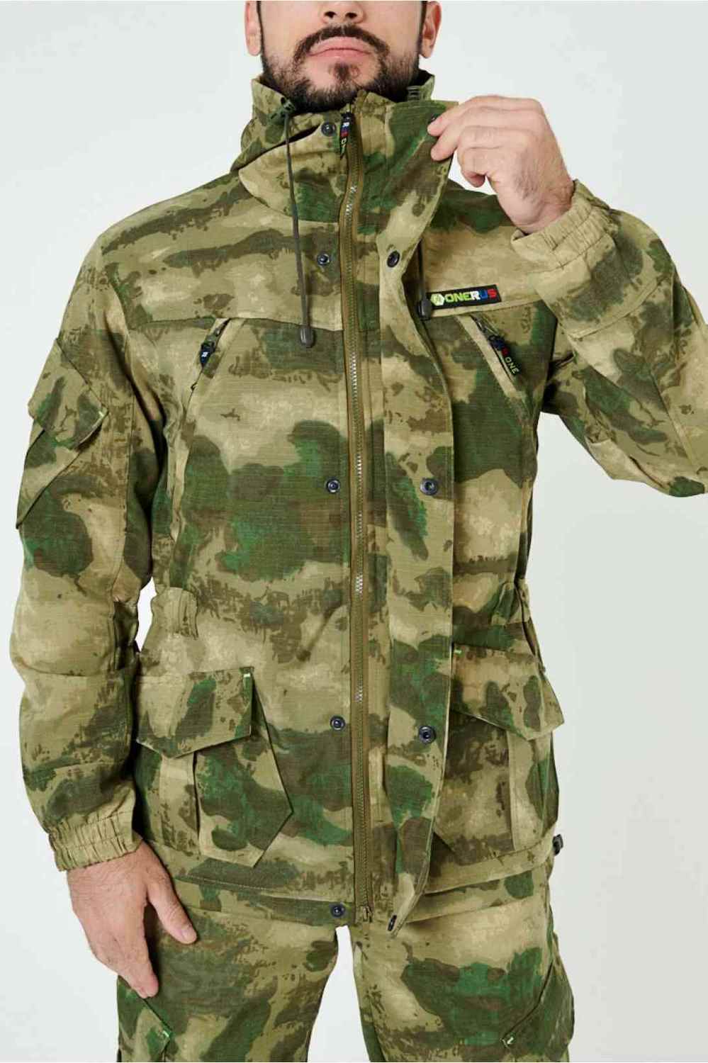 Костюм «Горный -5» относится к бюджетной линейке ONERUS — разработан в компании TRITON на основе легендарного костюма «Горка», используемого в спецподразделениях, а также огромным числом любителей всевозможного экстрима.