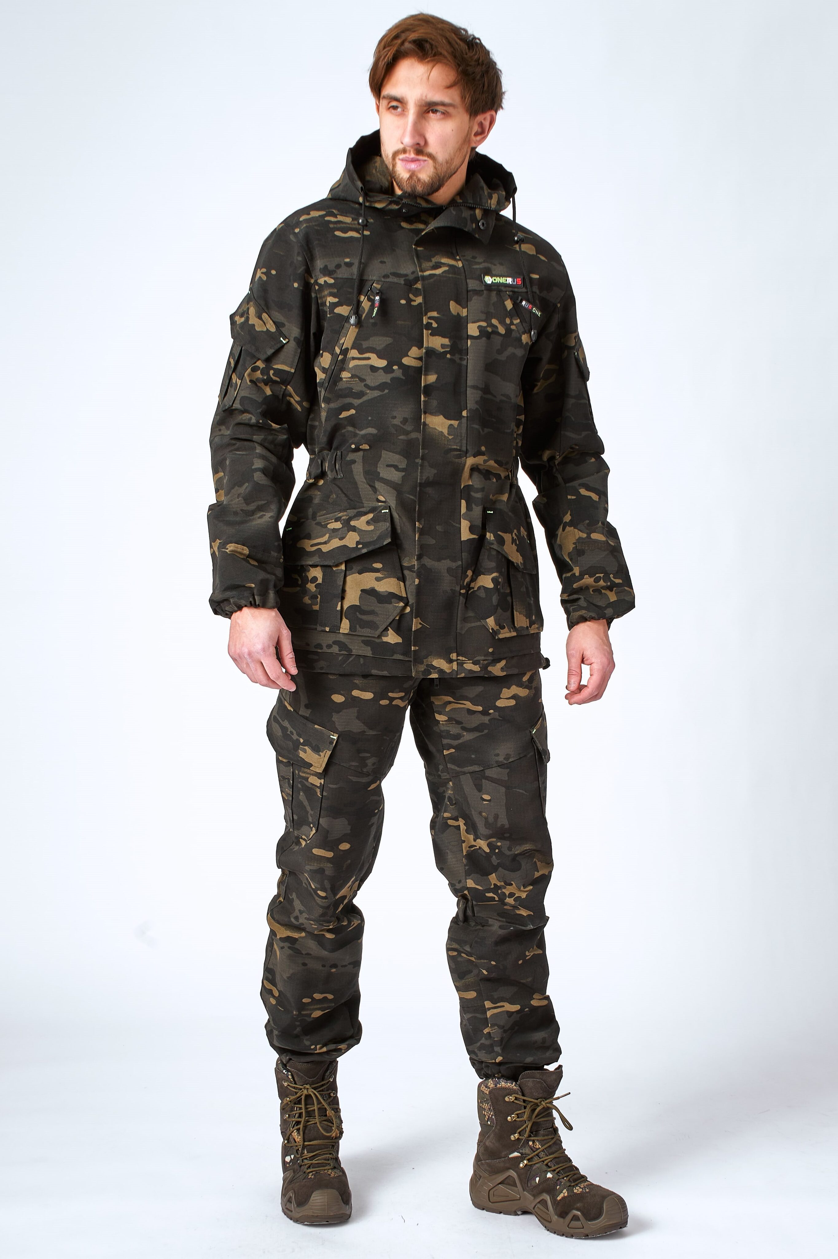 Костюм свободного кроя «Горный» Рип Стоп ONERUS имеет интересный дизайн и хорошую функциональность, благодаря чему его можно одевать как в повседневной жизни так и для походов в лес, охоты и рыбалки. Костюм выполнен из смесовой ткани Рип Стоп ( 80% полиэстер 20% хлопок) с добавлением армирующих нитей, что придает ему особую прочность и износостойкость. Высокий воротник «Стойка» защищает шею от продувания.